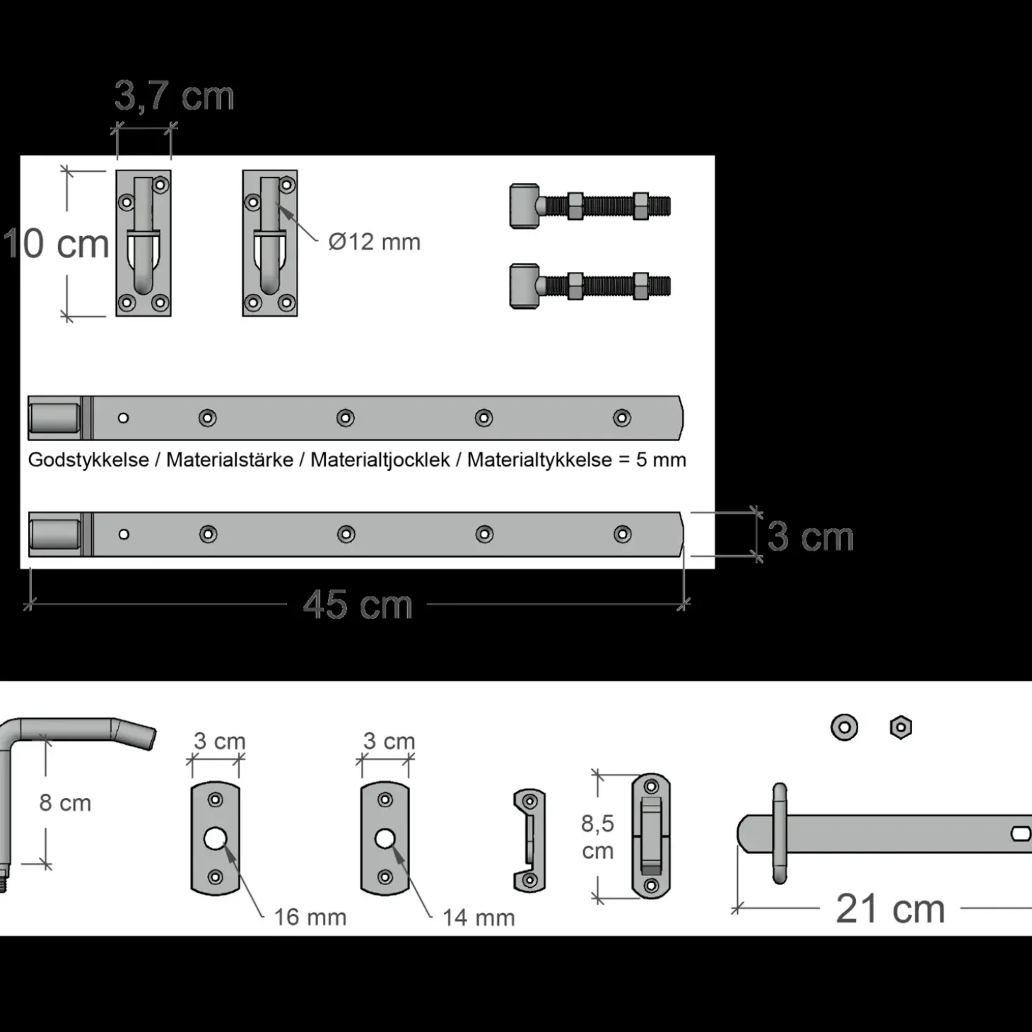 - Vær opmærksom på at, modulet sælges inkl. lågebeslag, bolte og skruer til montering af havelågen.