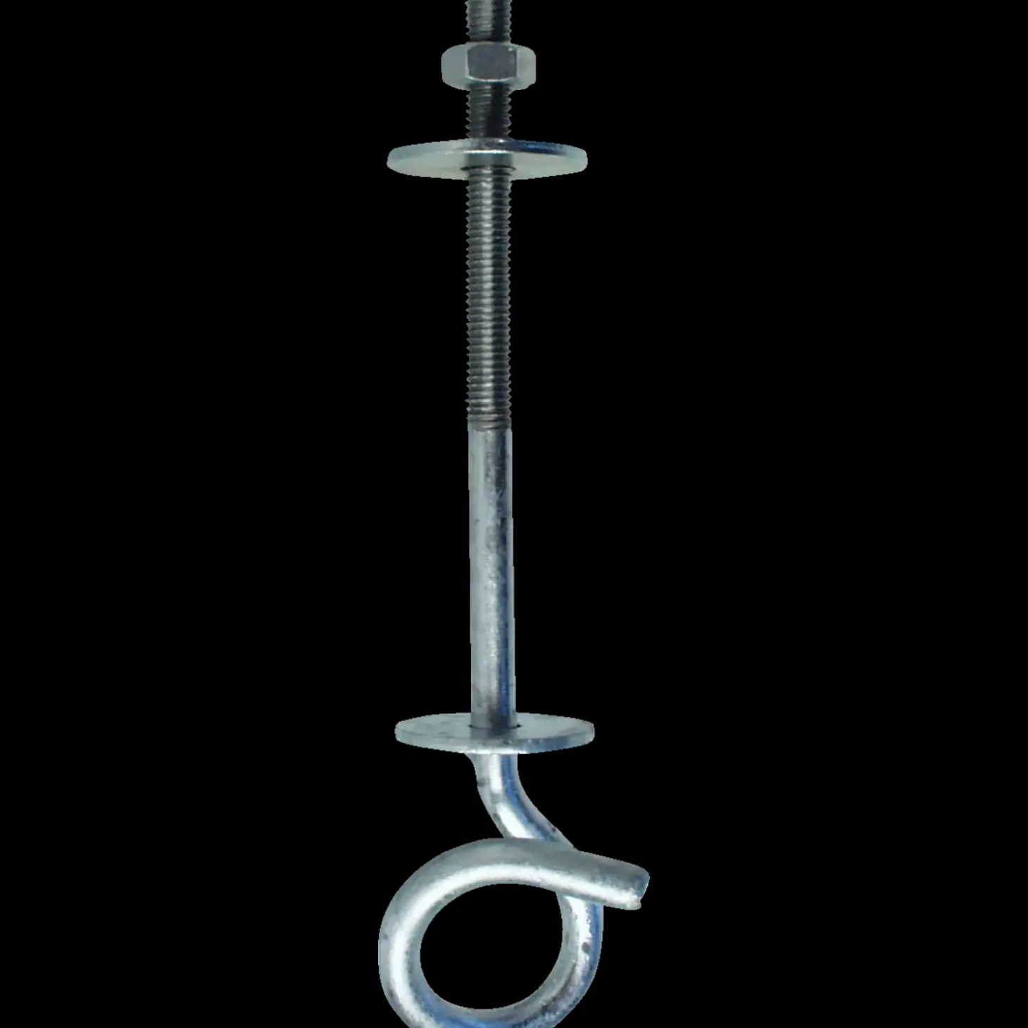 Gyngekrog til ophængning af fx gynger og hængekøjer. Gyngekrogen er 255 mm lang og er med M12 gevind, samt møtrik og spændskive.