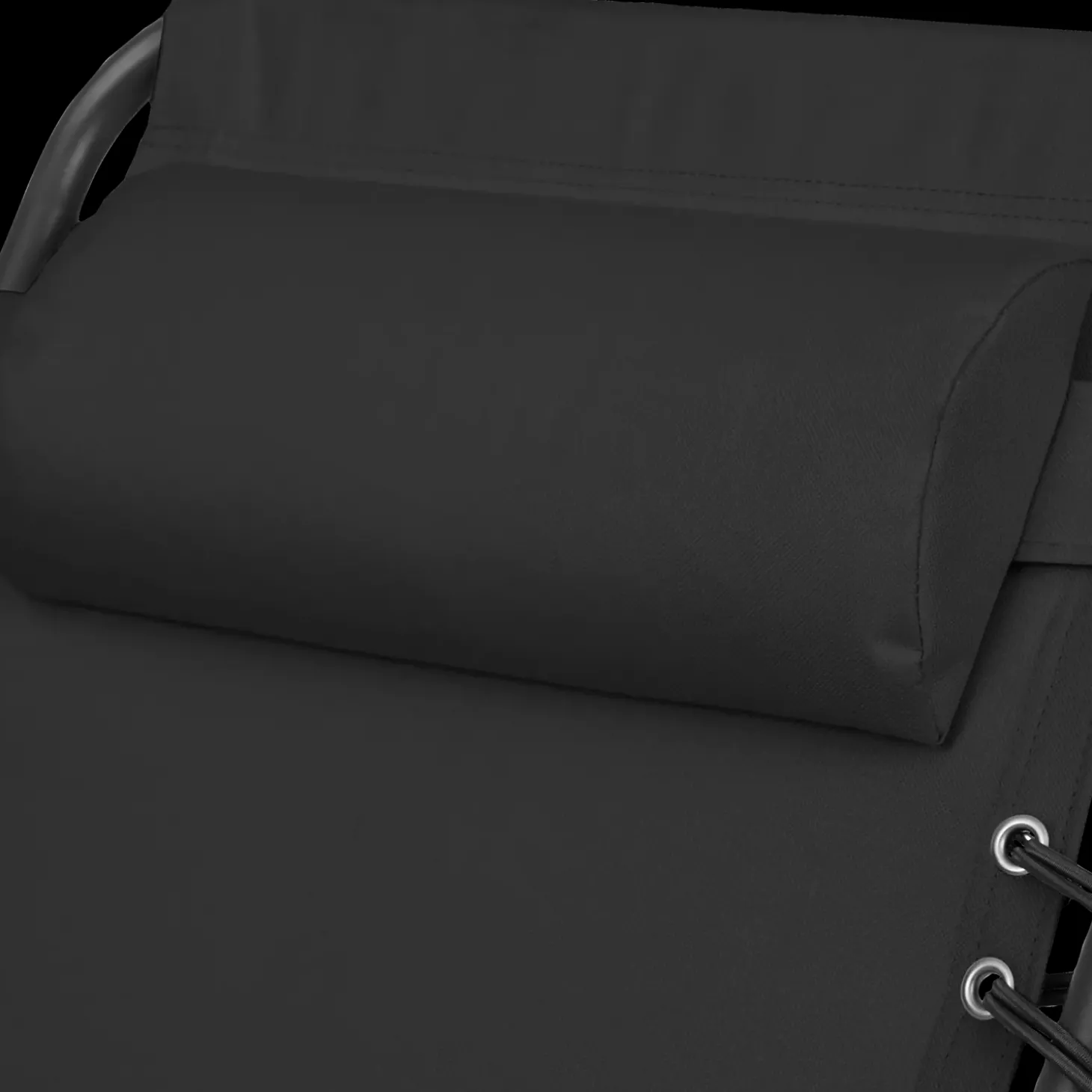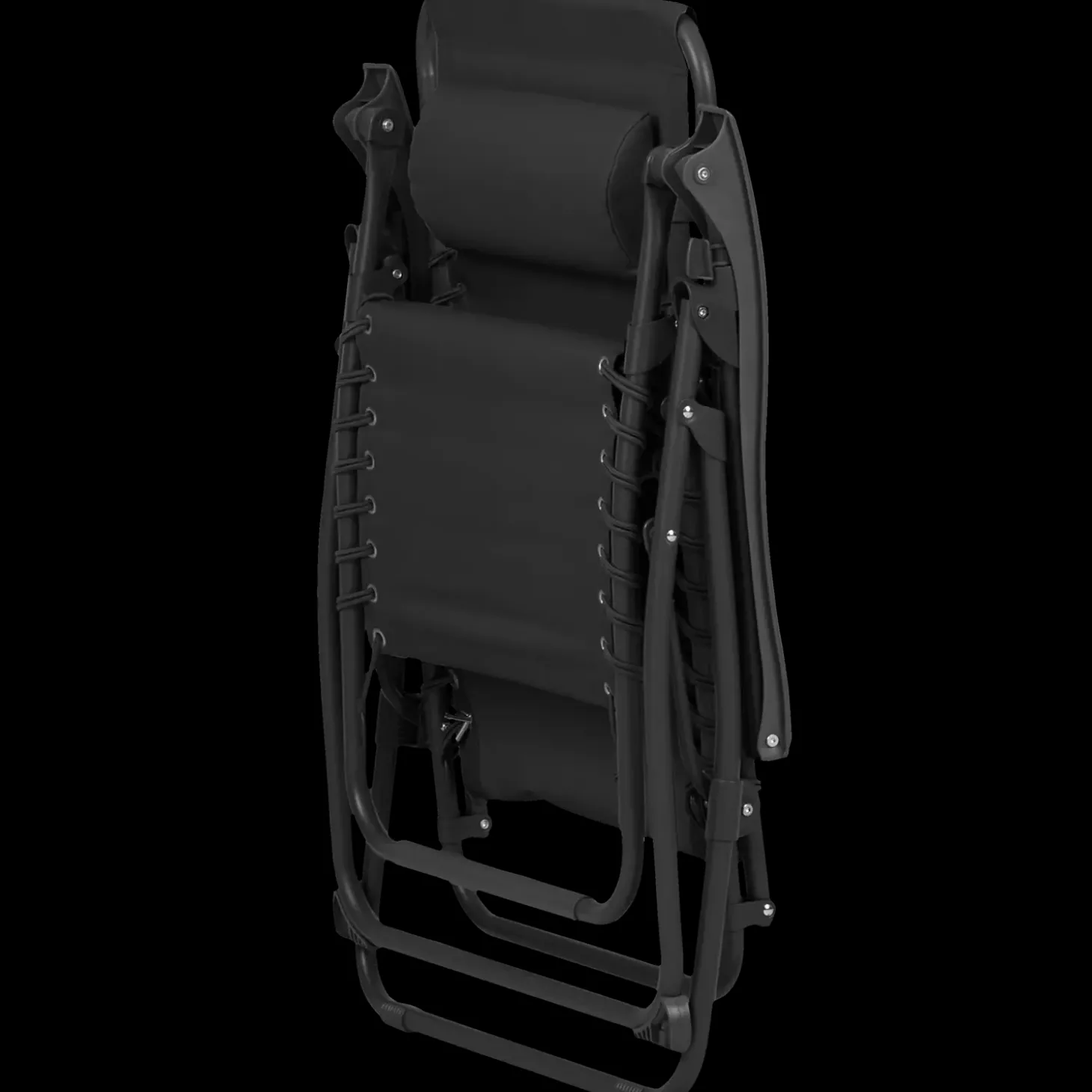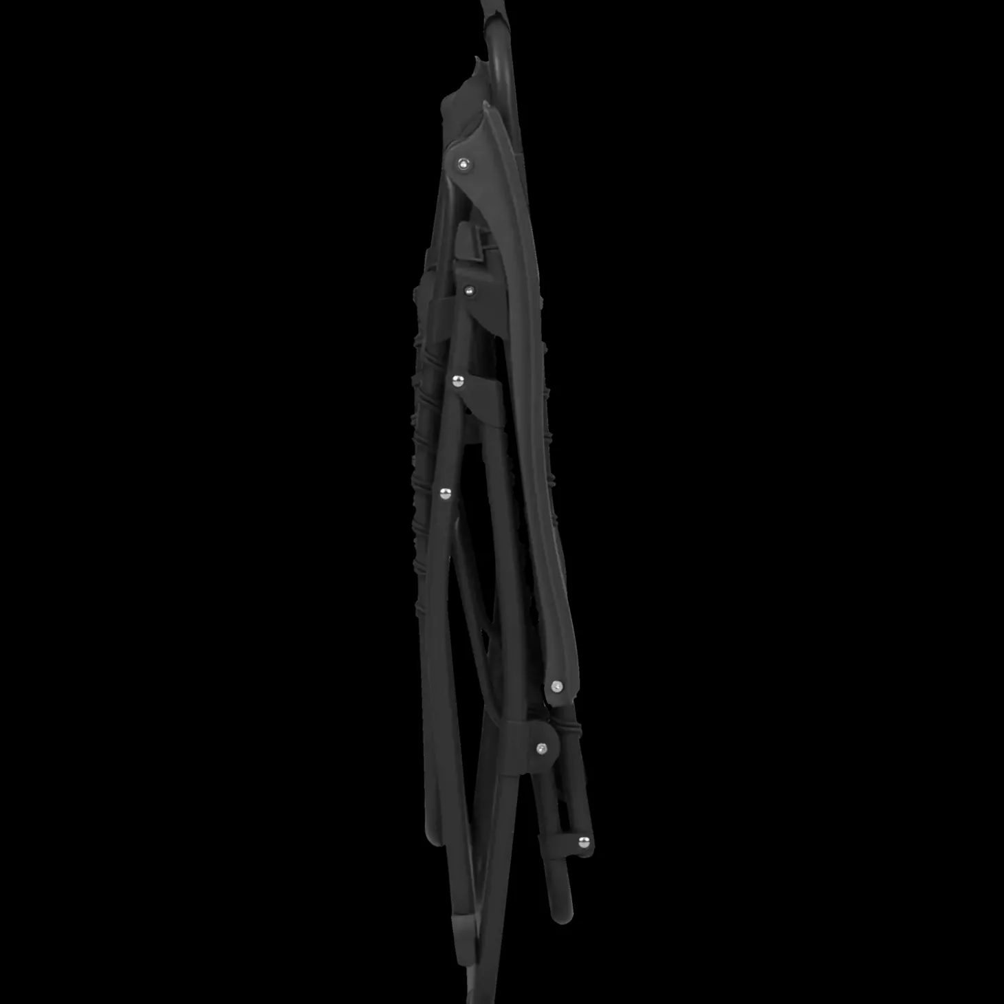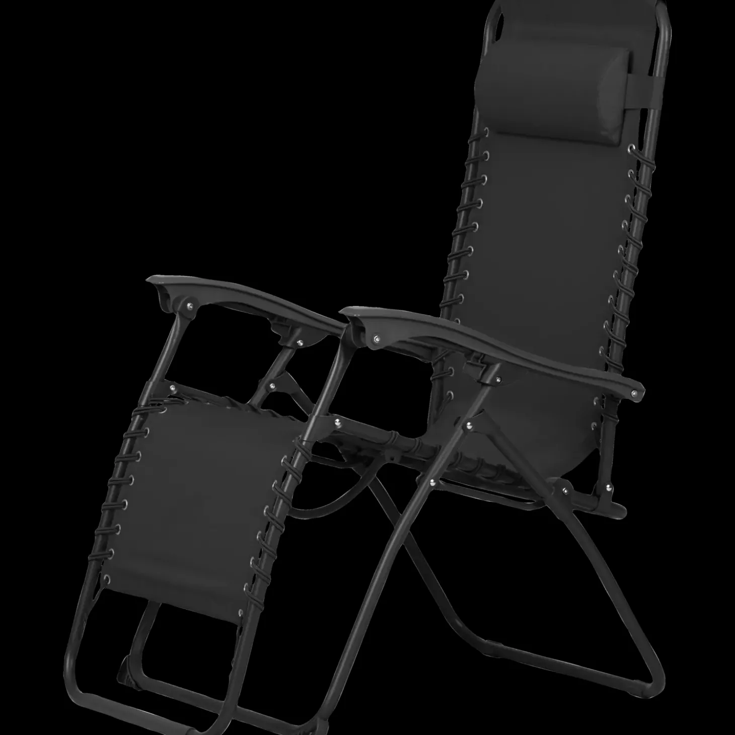 Komfortabel havestol med indstillelig ryg i sort stof med sortlakeret metalstel.