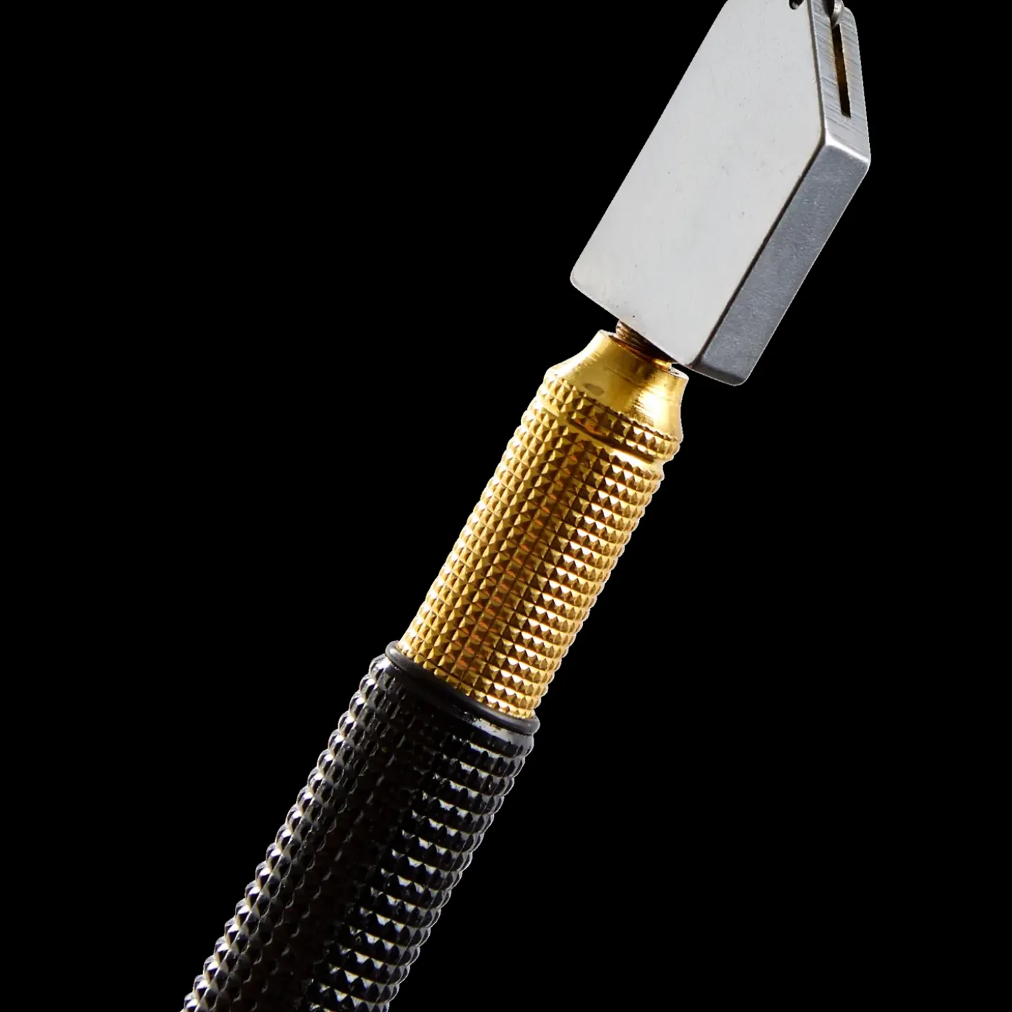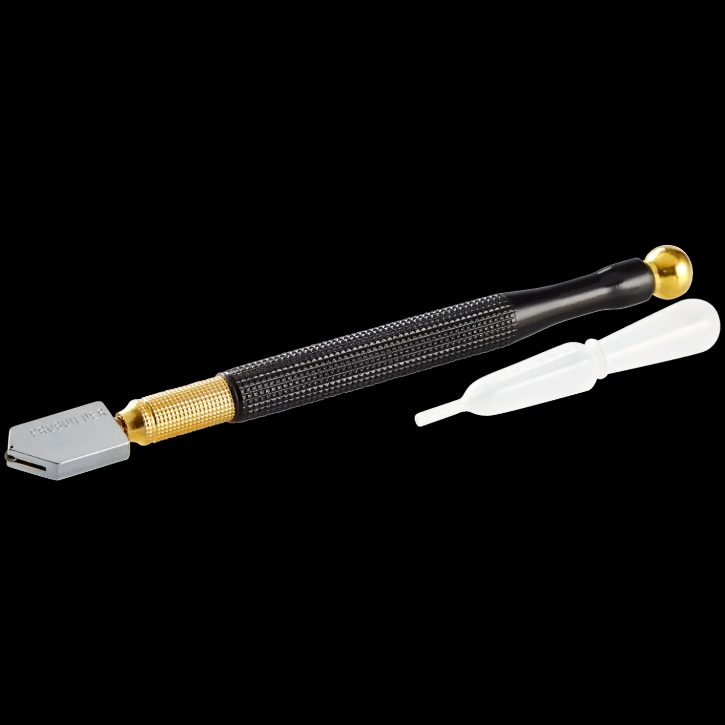 Glasskærer med hult skaft til olie for smøring af skærehjul.