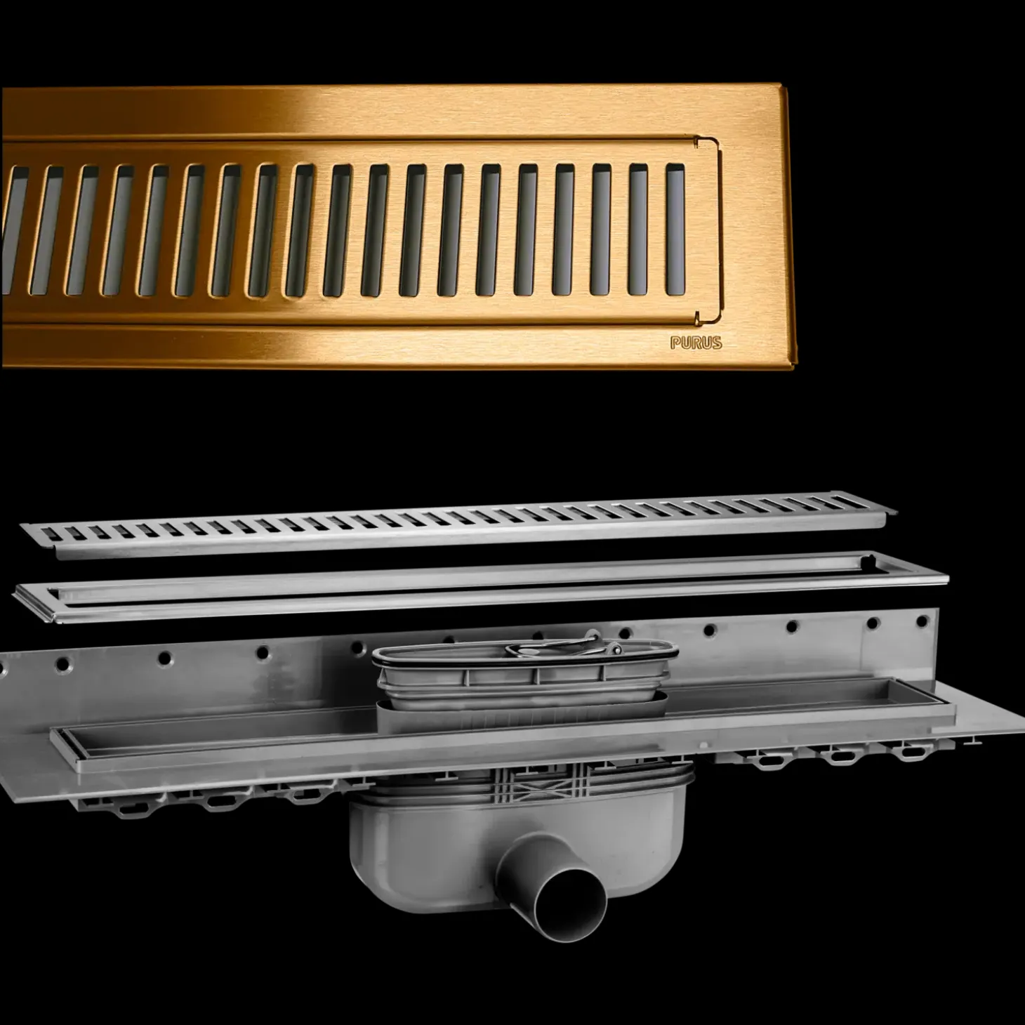 Purus afløbsrendesæt m/vandlås og rist 1000 mm messing