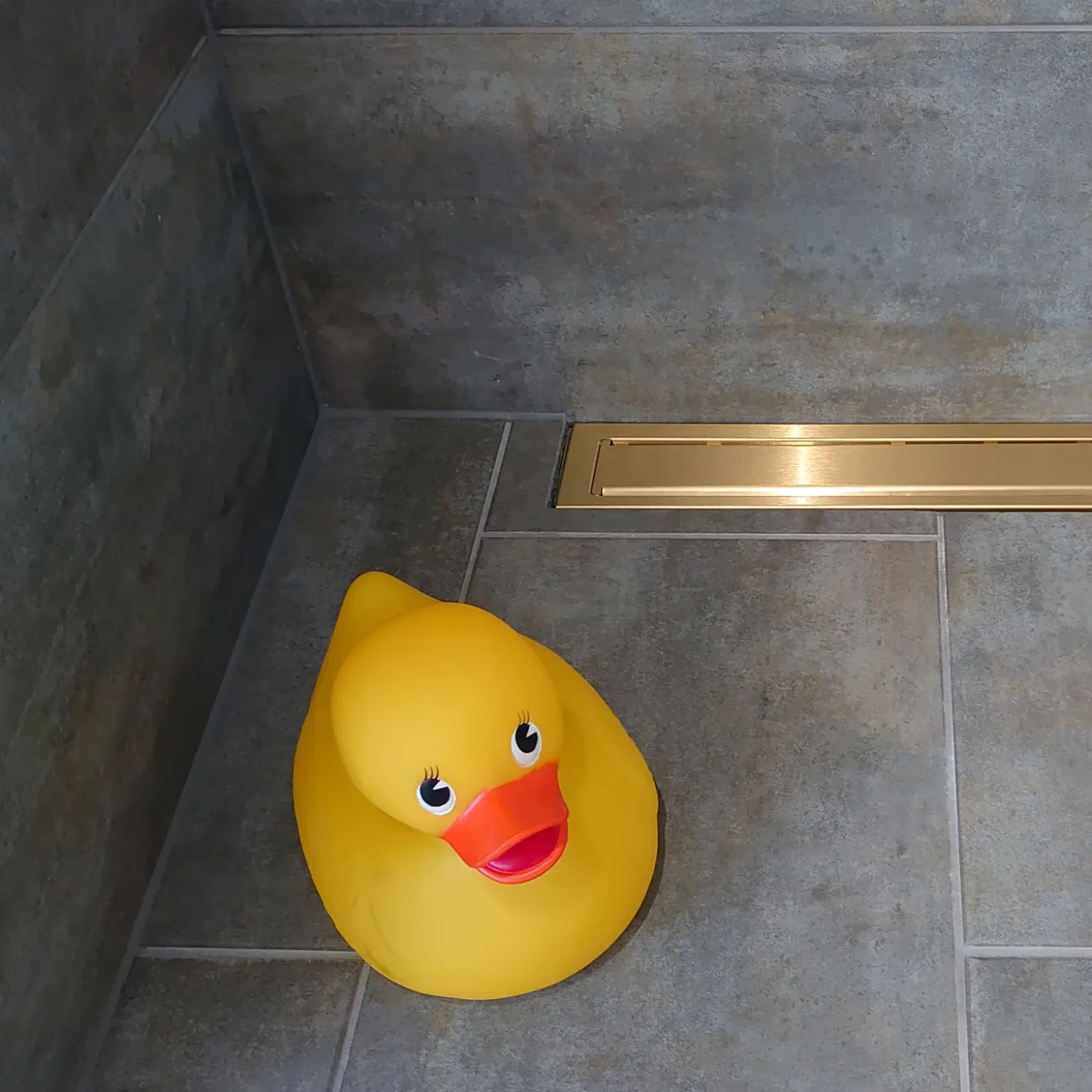 PURUS Line aflang afløbsrist og ramme RIB i rustfrit stål der er PVD coated behandlet for at opnå den specielle farve rist og ramme har.