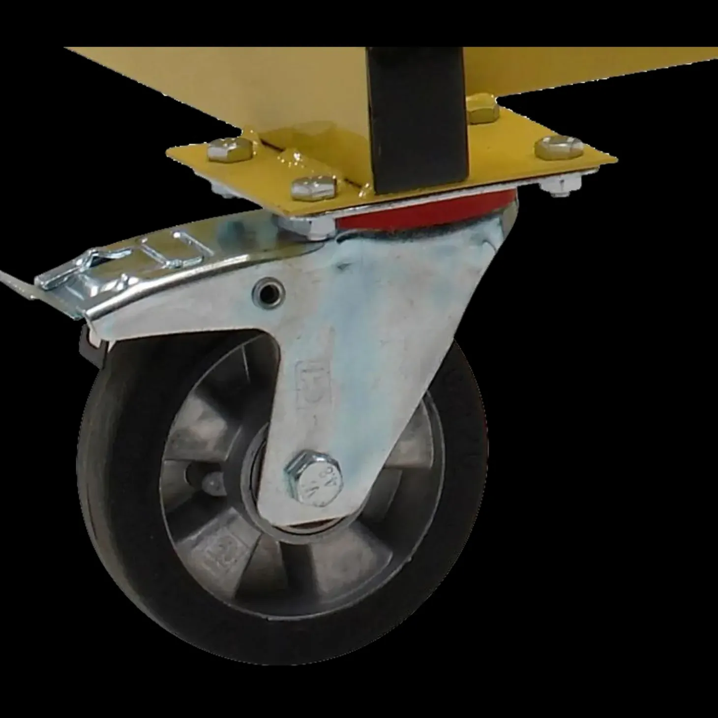 Massivt hjul 160 x 50. Monteret på drejelig gaffel med bremse.