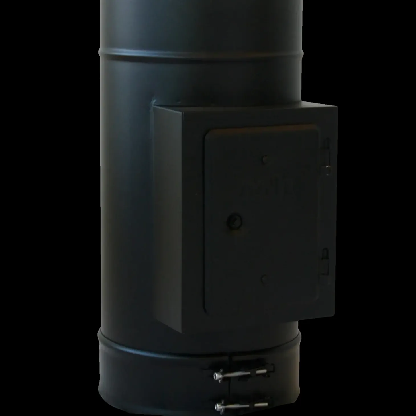 En rensesektion med låge fra Aduro, der anvendes som en foranstaltning for at lette fejningen af skorstenen. Rensesektionen måler 0,45 meter i højden og leveres inkl. spændebånd.