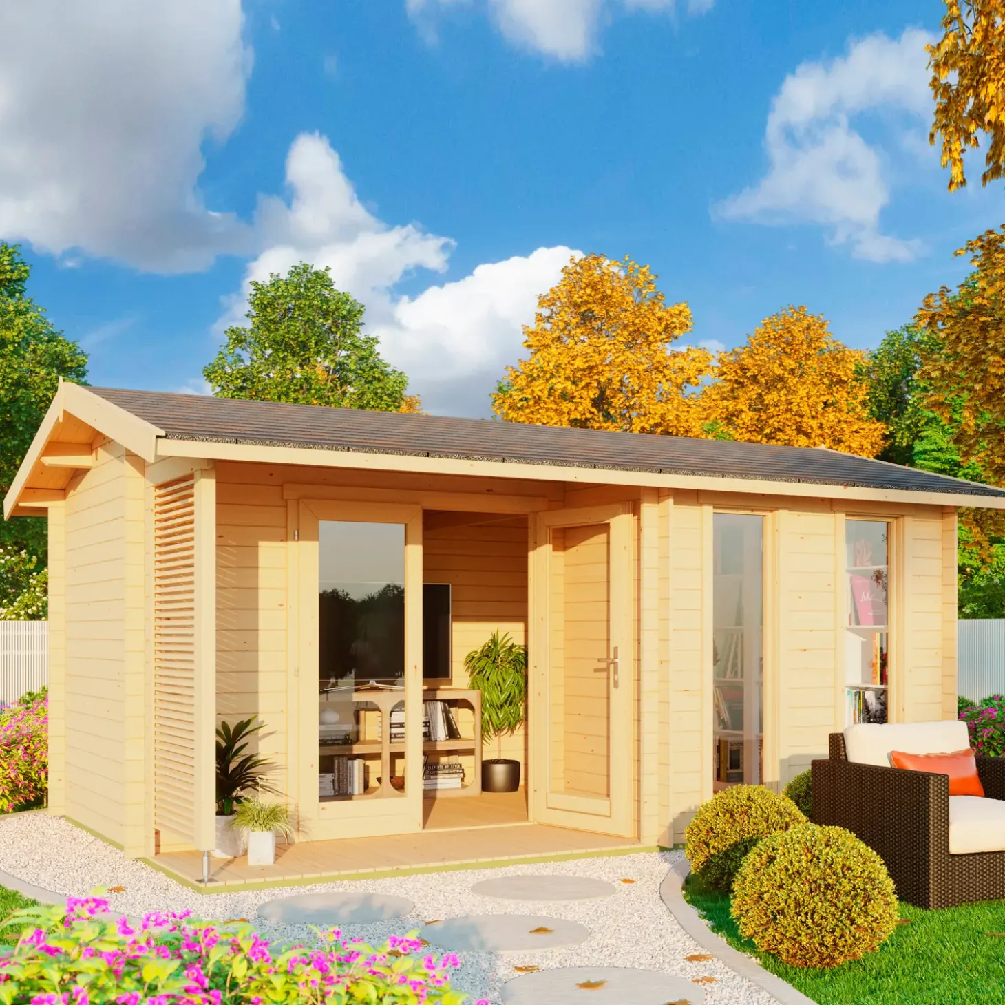 Nyd en masse hyggelige stunder i dette flotte anneks/hytte, med en lille overdækket terasse. En super tilføjelse til dit sommerhus, eller brug den i din have som et ekstra get away.