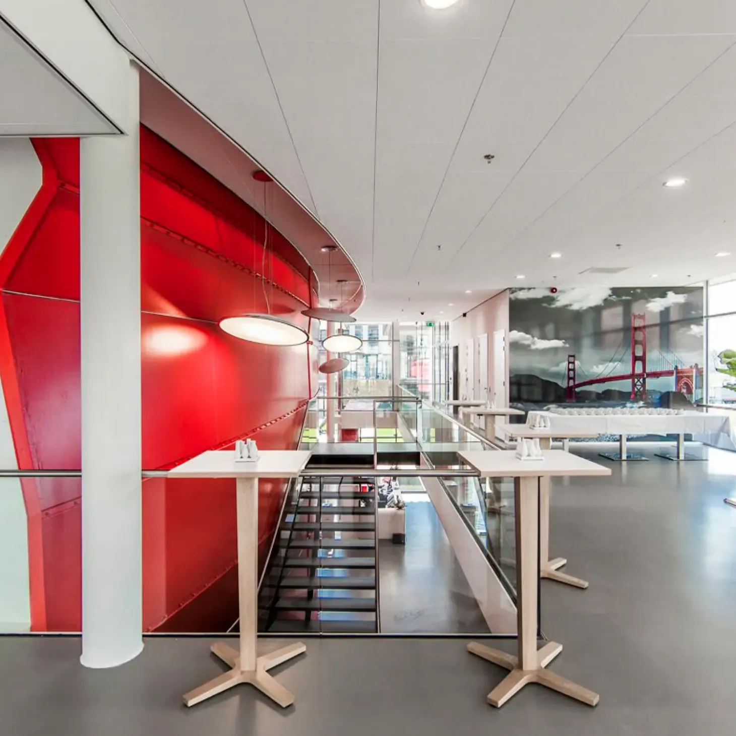 Rockfon Sonar E24. Loftpladerne er hvidmalet og har en glat fleece overflade.