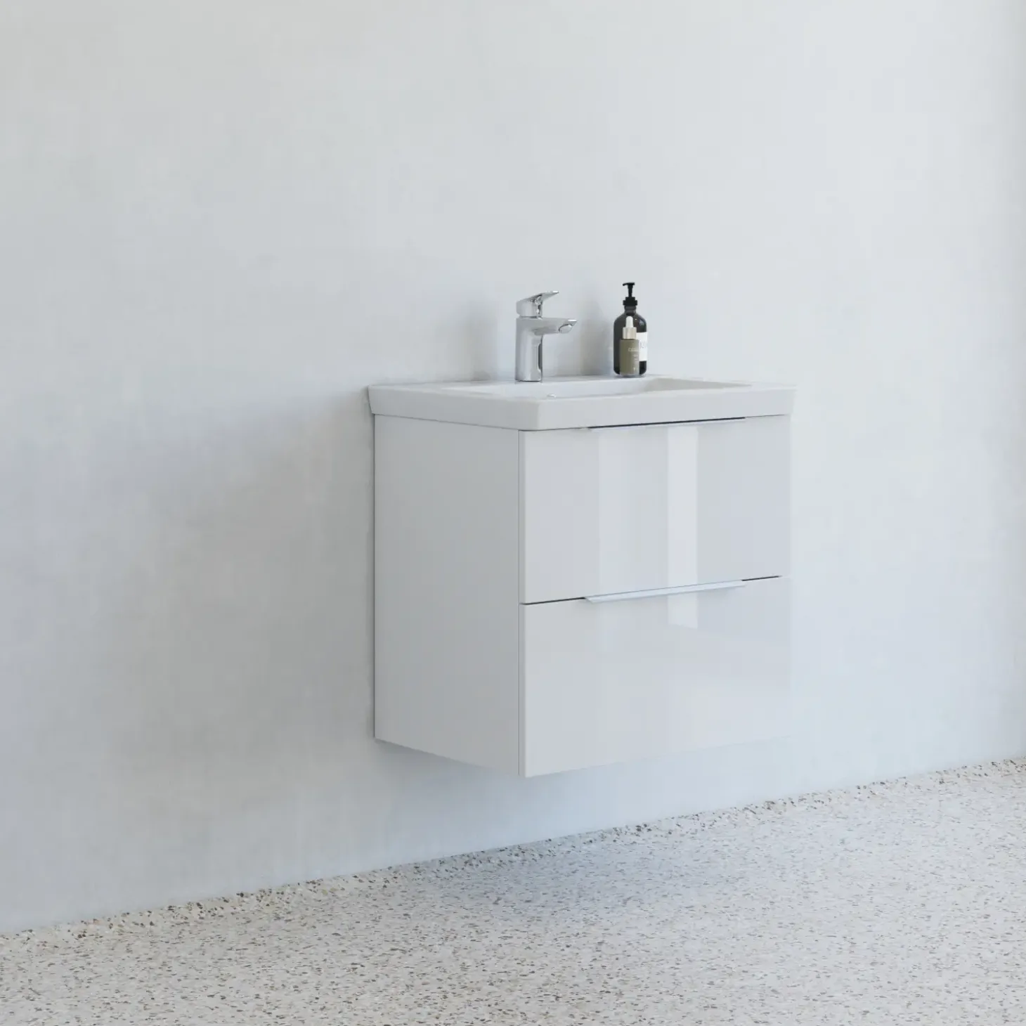 Skab et stilrent og funktionelt badeværelse med denne møbelpakke i 60 cm bredde. Den elegante Lazuli håndvask i sanitetsporcelæn har et ekstra dybt og rummeligt bassin med flad bund, der giver masser af plads til daglig brug. Den hårde, glatte og blanke overflade er både modstandsdygtig og nem at rengøre, mens de afrundede kanter tilfører et blødt og eksklusivt udtryk. Det tilhørende vaskeskab har to rummelige skuffer med fuldt udtræk og dæmpning for en lydløs og behagelig brugeroplevelse.