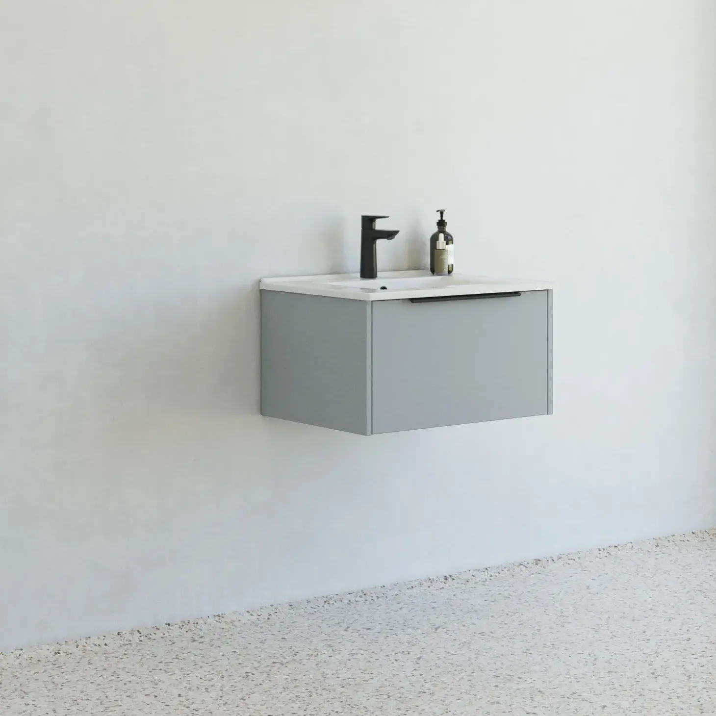 Opgrader dit badeværelse med Scanbad NOW møbelpakken – en perfekt kombination af funktionalitet og stil. Det smukke vaskeskab med én skuffe og en elegant vask er designet med en glat front, der tilføjer et strejf af moderne elegance. Oplev skønheden i enkelhed med Scanbad NOW.