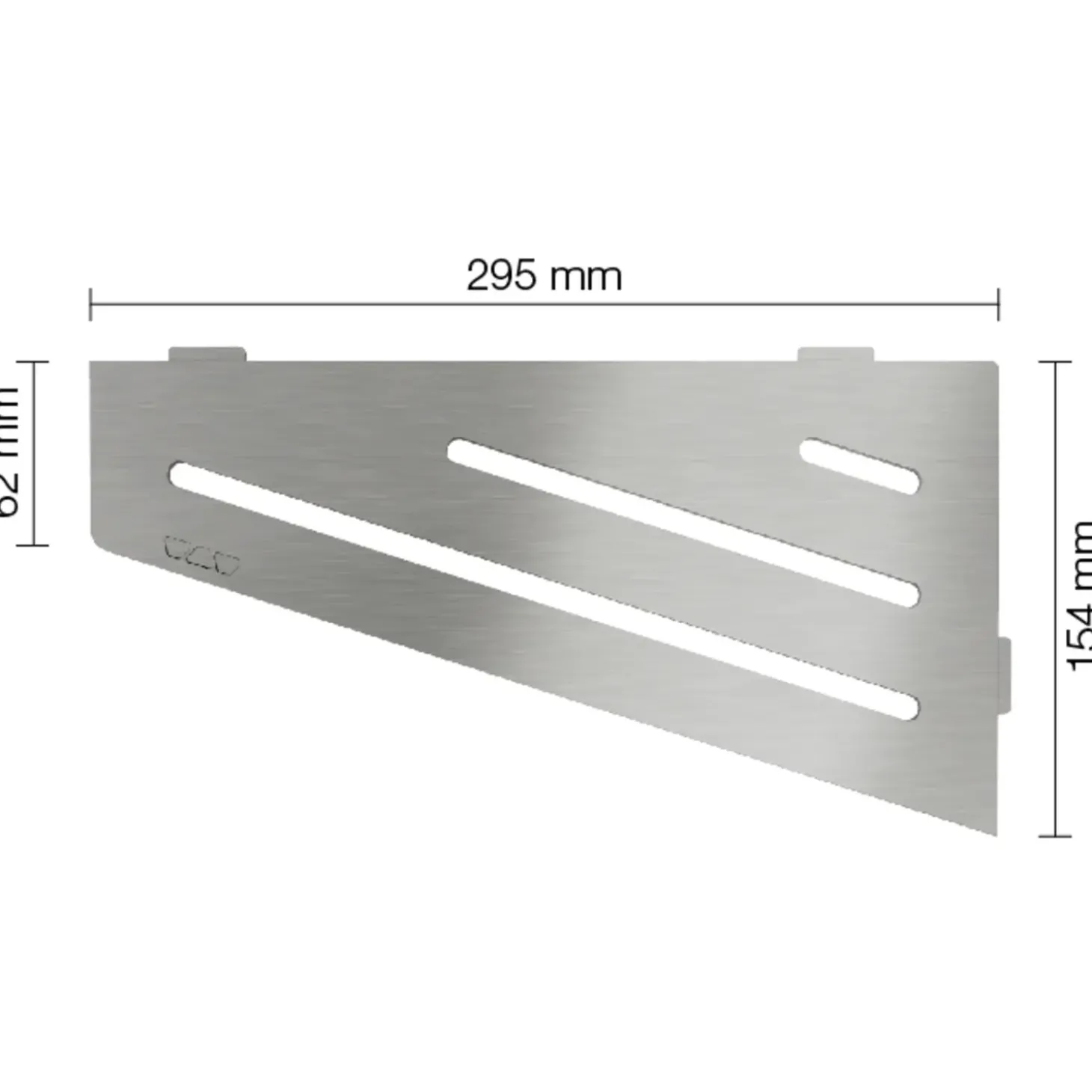 Schlüter-SHELF-E-S3 er firkantede hylder med asymmetriske kantlængder til montering i hjørner. De fås i designvarianterne FLORAL, CURVE, PURE, SQUARE og WAVE, hver i materialekvaliteterne børstet rustfrit stål og aluminium med TRENDLINE-pulverbelægning af høj kvalitet. Hylderne kan integreres i flisemønsteret under fliseopsætning, eller efterfølgende monteres ind i fugerne på flisevægge med de kun 2 mm tykke hyldebærere. SHELF-E-S3 egner sig som hylder i bruseområdet, men kan f.eks. også anvendes på flisevægge i små køkkener.