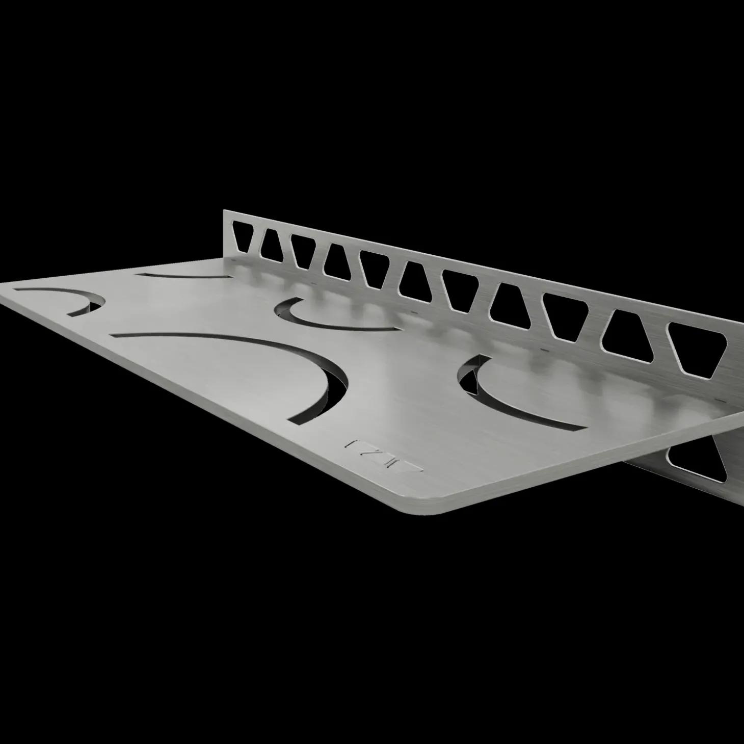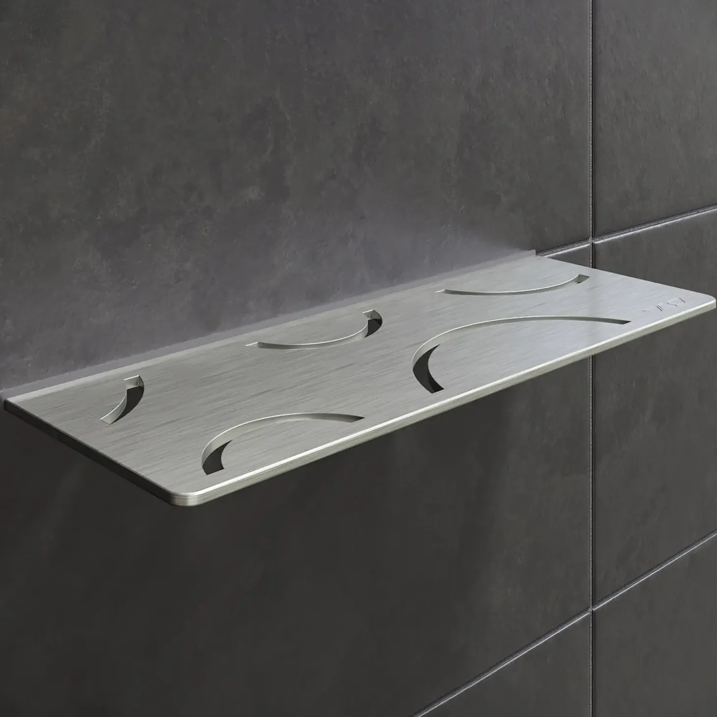 Schlüter-SHELF-W er rektangulære hylder til montering på vægfladen. De fås i designvarianterne FLORAL, CURVE, PURE, SQUARE og WAVE, hver i materialekvaliteterne børstet rustfrit stål og aluminium med TRENDLINE-pulverbelægning af høj kvalitet. De to fastgøringsflige med trapez- perforering integreres i fliseklæberen under opsætningen af fliserne. De egner sig som hylder i bruseområdet, men kan f.eks. også anvendes på flisevægge i små køkkener.
