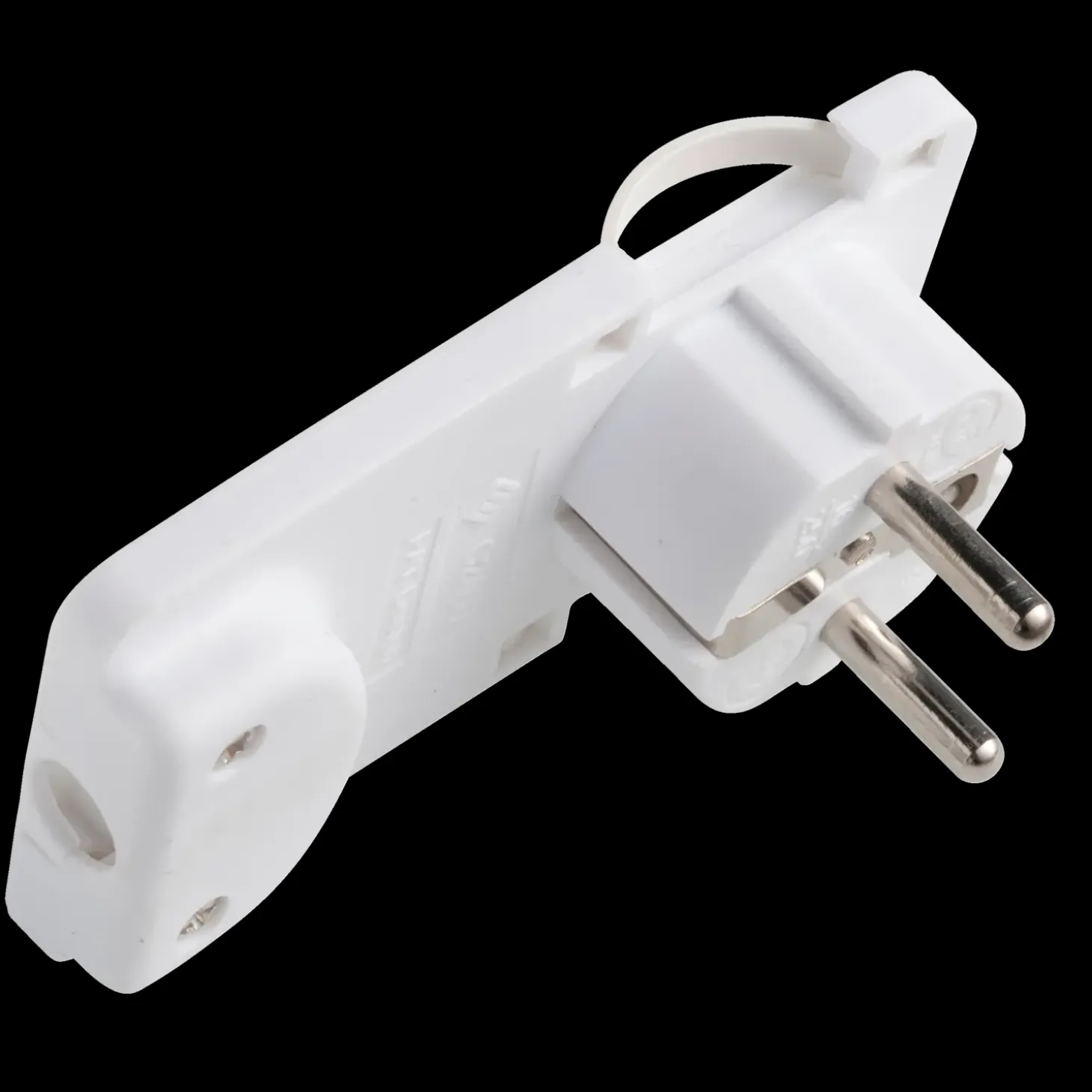 Denne stikprop som er utrolig smal, og udstyret med en bøjle for at holde ledningen tæt ind til væggen.