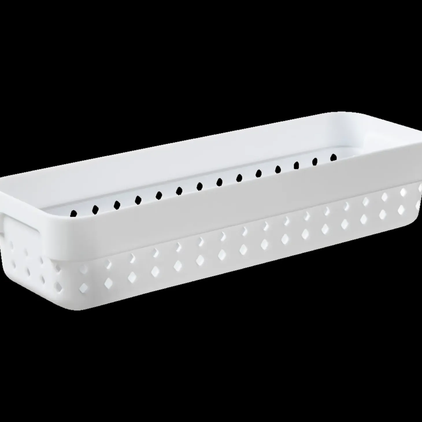 Praktisk små plastkurve der tilbyder et smukt og elegant organiseringssystem til småting, og det passer til ethvert rum i hjemmet. Designet inkluderer diamantformede huller, som tilføjer et moderne look. Kurven af høj kvalitet er ideel til at organisere kuglepenne og andre kontorartikler. Den kan også være ideel til at organisere make-up og andre personlige ting.