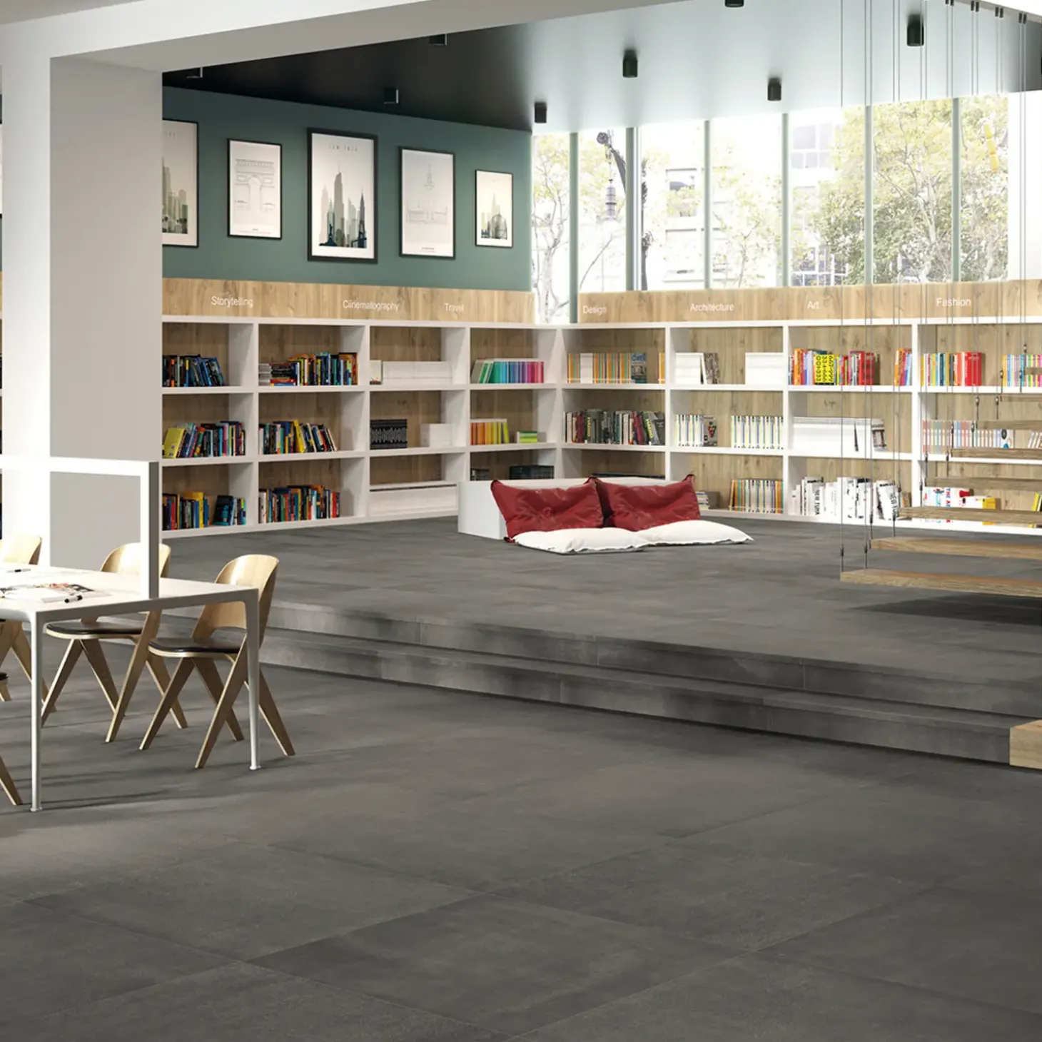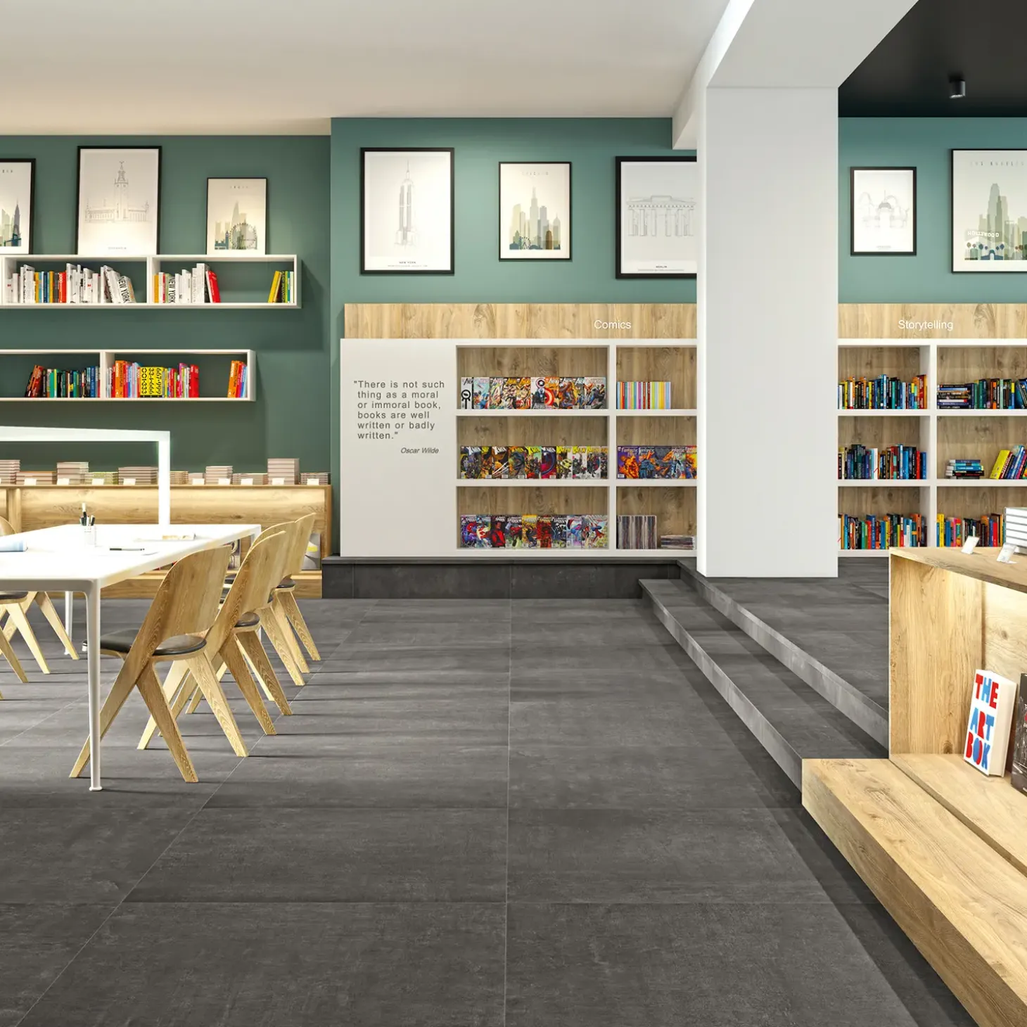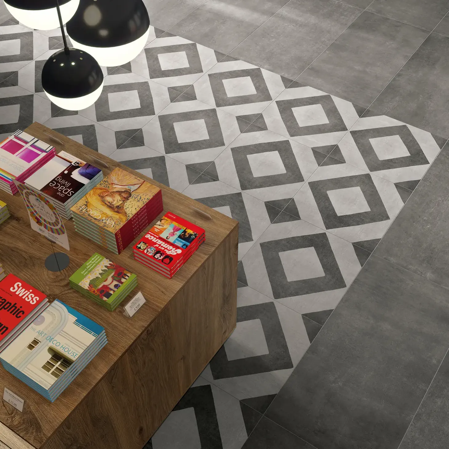 Fliser til væg og gulv med arkitektoniske materialer brugt side om side med traditionelle materialer.
