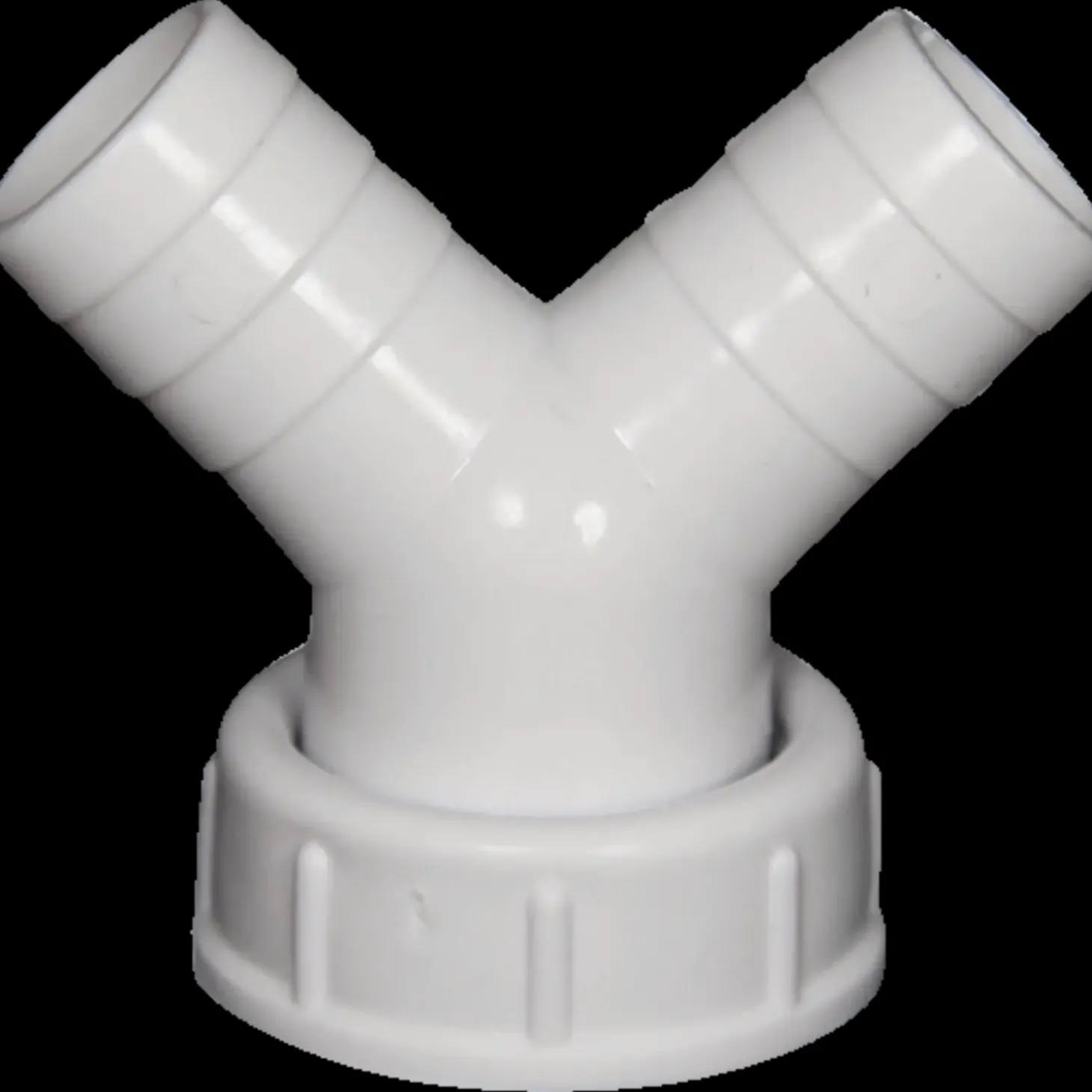 Slangeforskruning til afløbsslange dobbelt. 1″ omløber x to 3/4″ slangestudse. Kan ikke monteres lovligt.