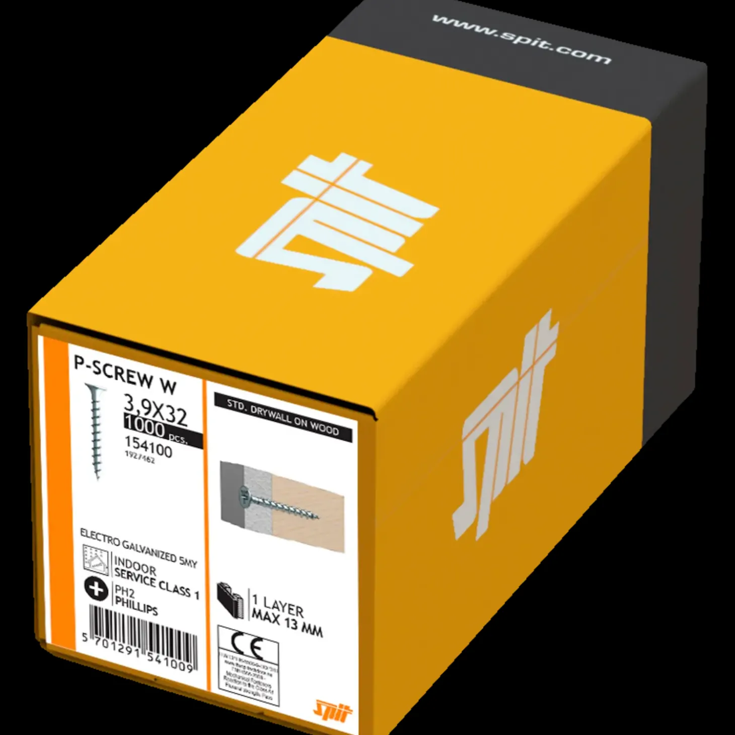 Spit P-Screw W gipsskrue t/træ 3,9×32 mm TH PH2 elforzink. 1000 stk.