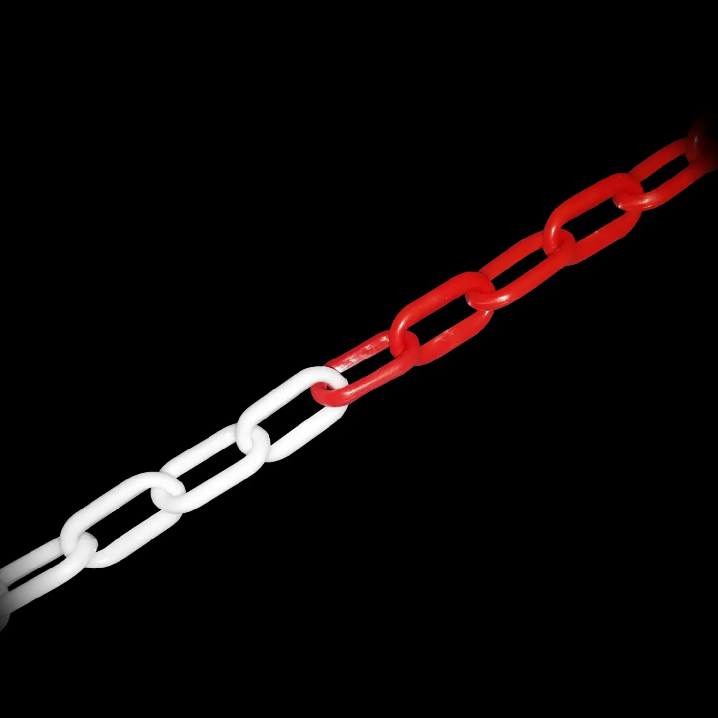 Rød og hvid farvet plast afspærringskæde med 6 mm kraftige led.