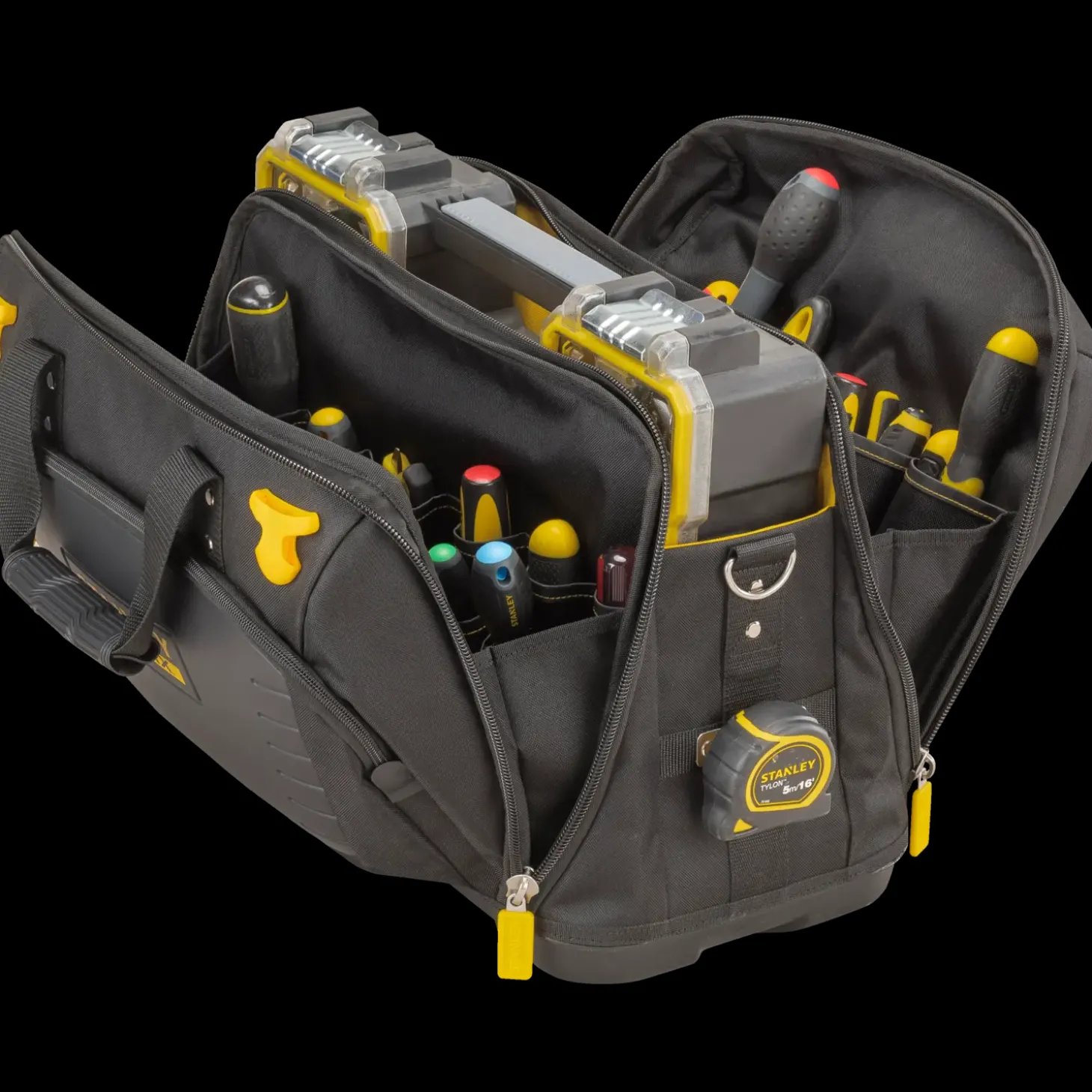 Stor åben værktøjstaske med 4 fleksible rum.