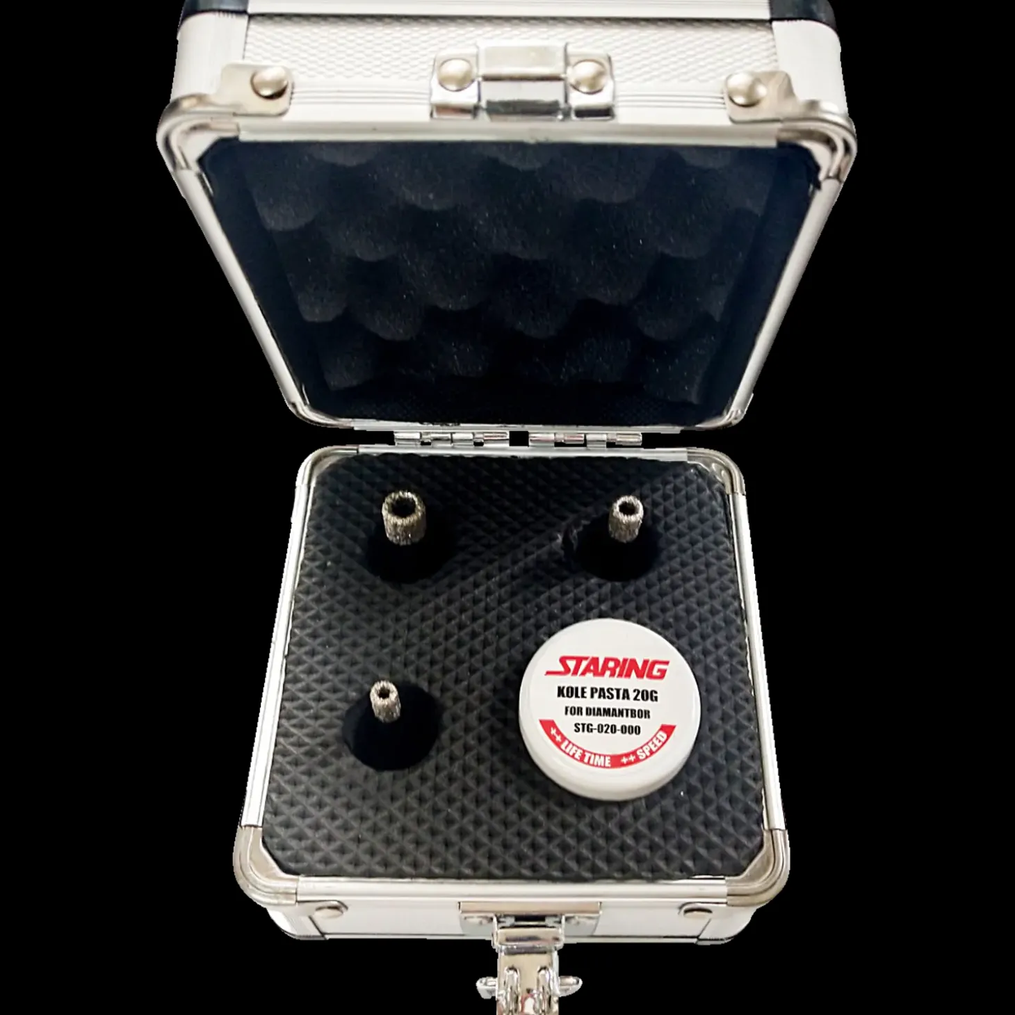 Staring diamantbor kan leveres med hexagonal (HEX) tilslutning for almindelig boremaskine og med M14 indvendigt gevind til brug på vinkelsliber. Derudover findes der en adapter, som kan konvertere M14 til HEX, så alle diamantborene kan bruges i boremaskine.