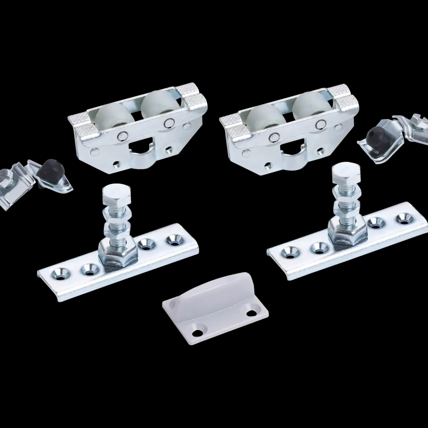 Skydedørsbeslag til nem og hurtig montering af skydedøre. Passer sammen med KG 40/75 stålskinne. Svalk KG 75 skydedørsbeslagsæt leveres uden skinne.
