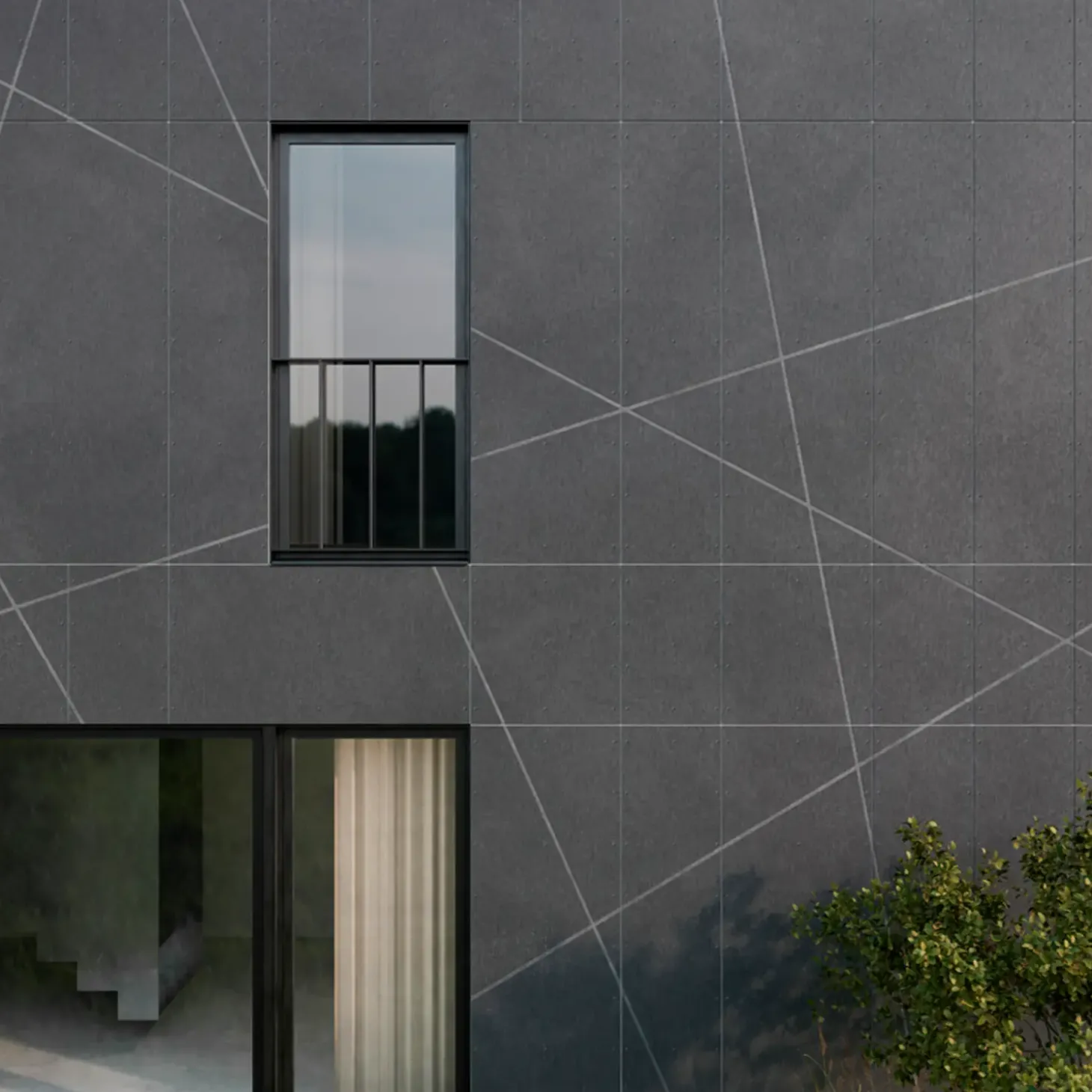 Overfladebehandling og overflade: Swisspearls Patinas fremstillingsproces giver pladerne en unik overfladestruktur samt en hydrofobisk overflade.