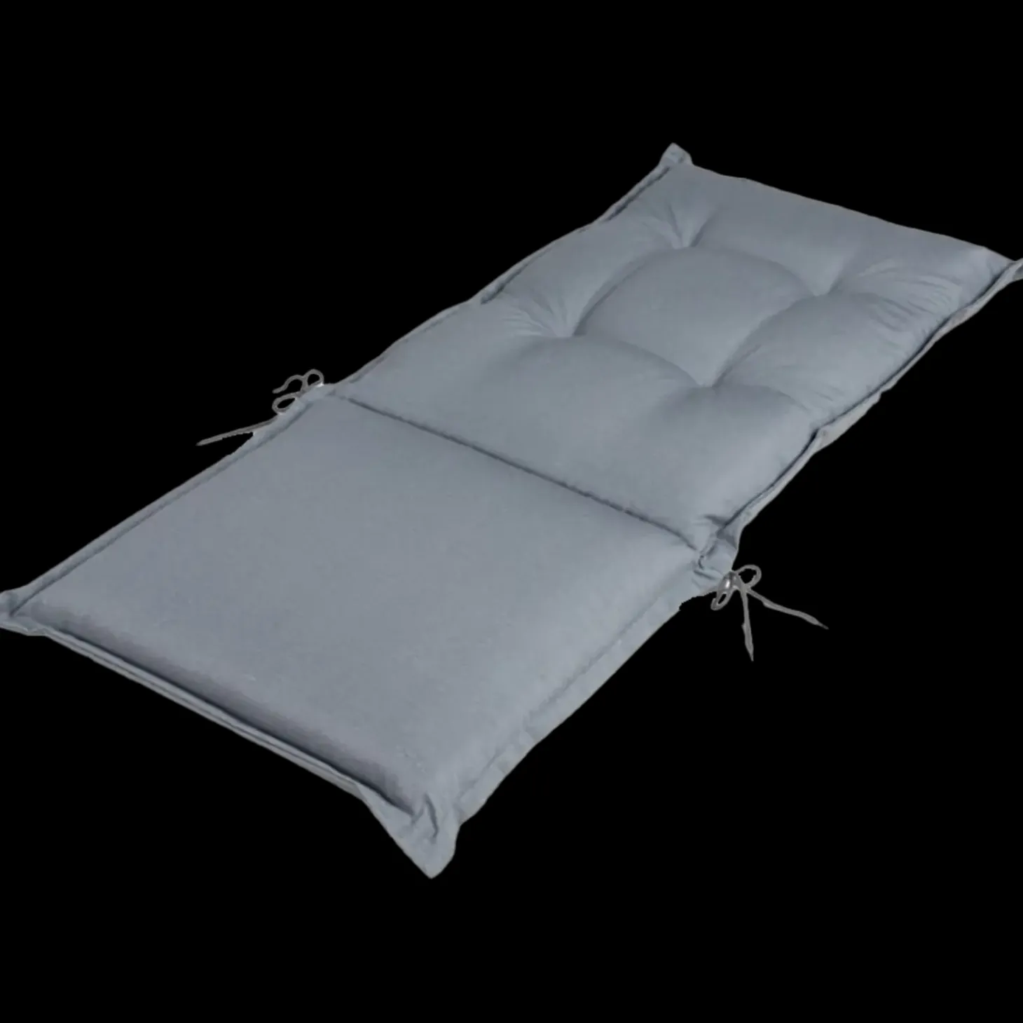 Grå stof af 100% genanvendte bomuldsfibre og plastflasker. Til alm. stol med lav ryg.Vandafvisende overfladebehandling der beskytter mod salt- og klorvand, UV-lys samt beskytter mod mug og skimmel.Rengøring: Hynderne kan håndvaskes ved 30°