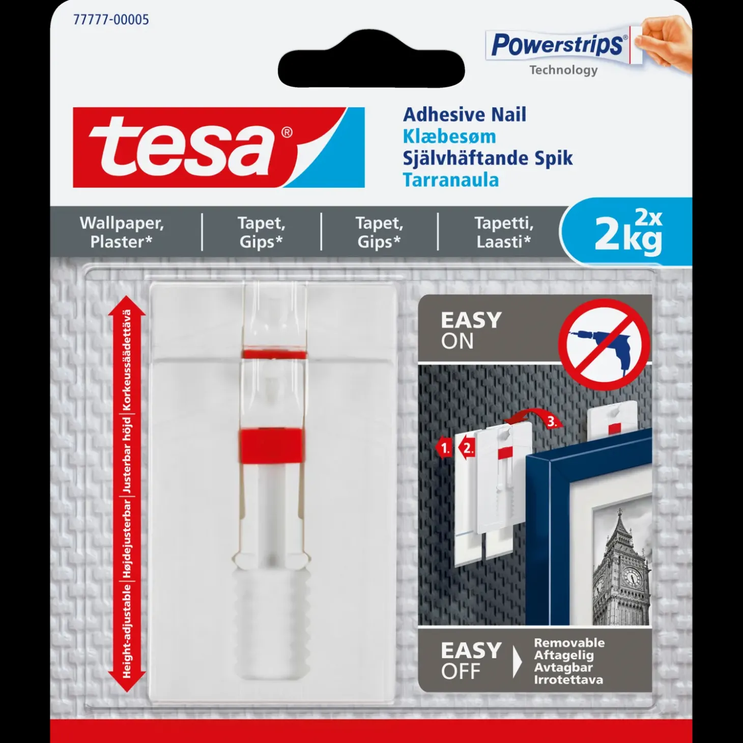 Disse justerbare klæbesøm til fliser og metal fra tesa® kan bære op til 4 kg (to søm kan bære op til 8 kg). De er perfekte til sikker montering af billedrammer og andre flade genstande med en dybde på mindre end 4 cm. Derudover kan du justere sømmet, så det er nemt at få dine ting til at hænge lige. Takket være Powerstrips®-teknologien kan klæbesømmet hurtigt fjernes igen uden at efterlade klæberester. Klæbesømmet er nemt at genanvende med en ny strip.