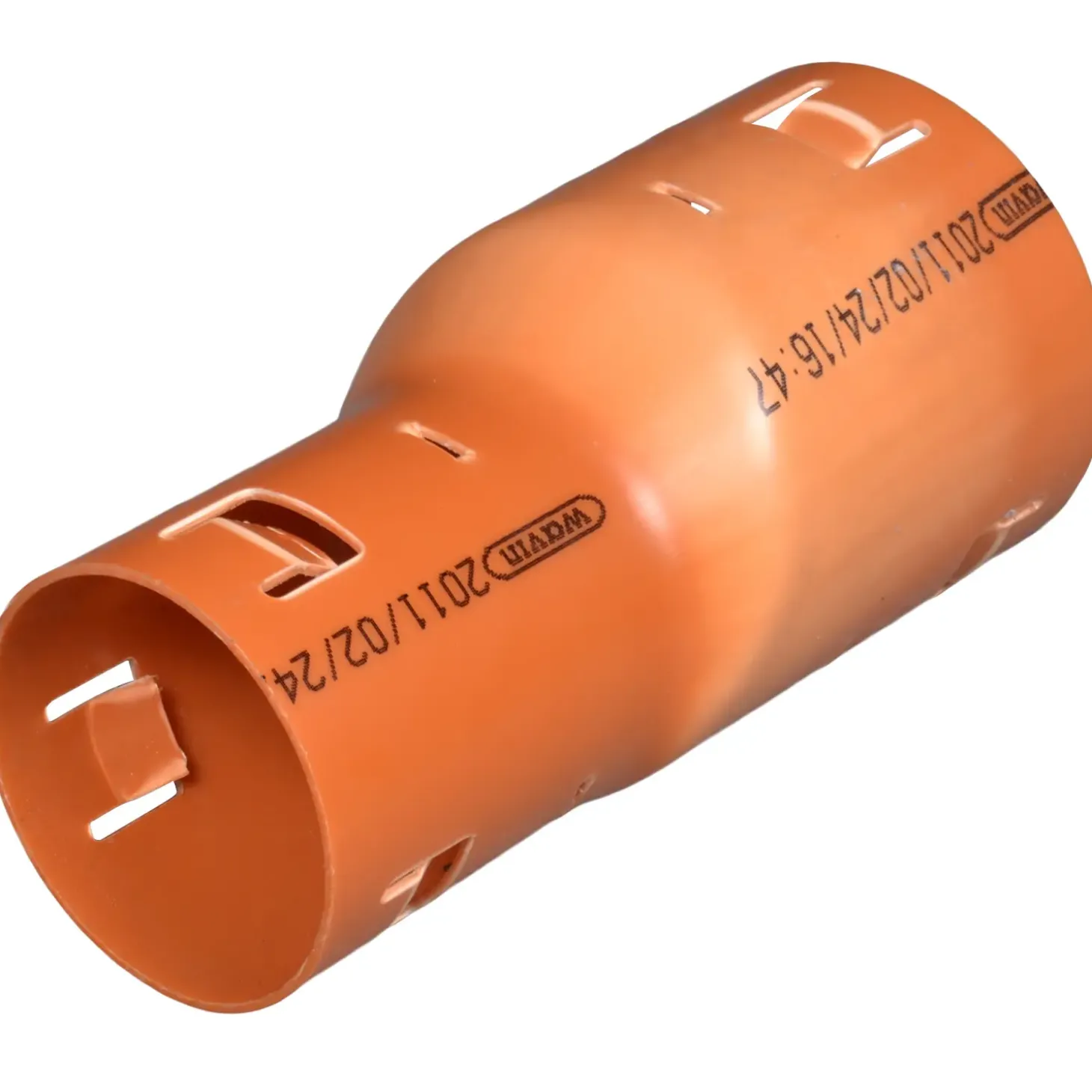 Drænreduktion fra Wavin til Wavins drænrør. Bruges når et mindre drænrør skal tilsluttes et større drænrør.