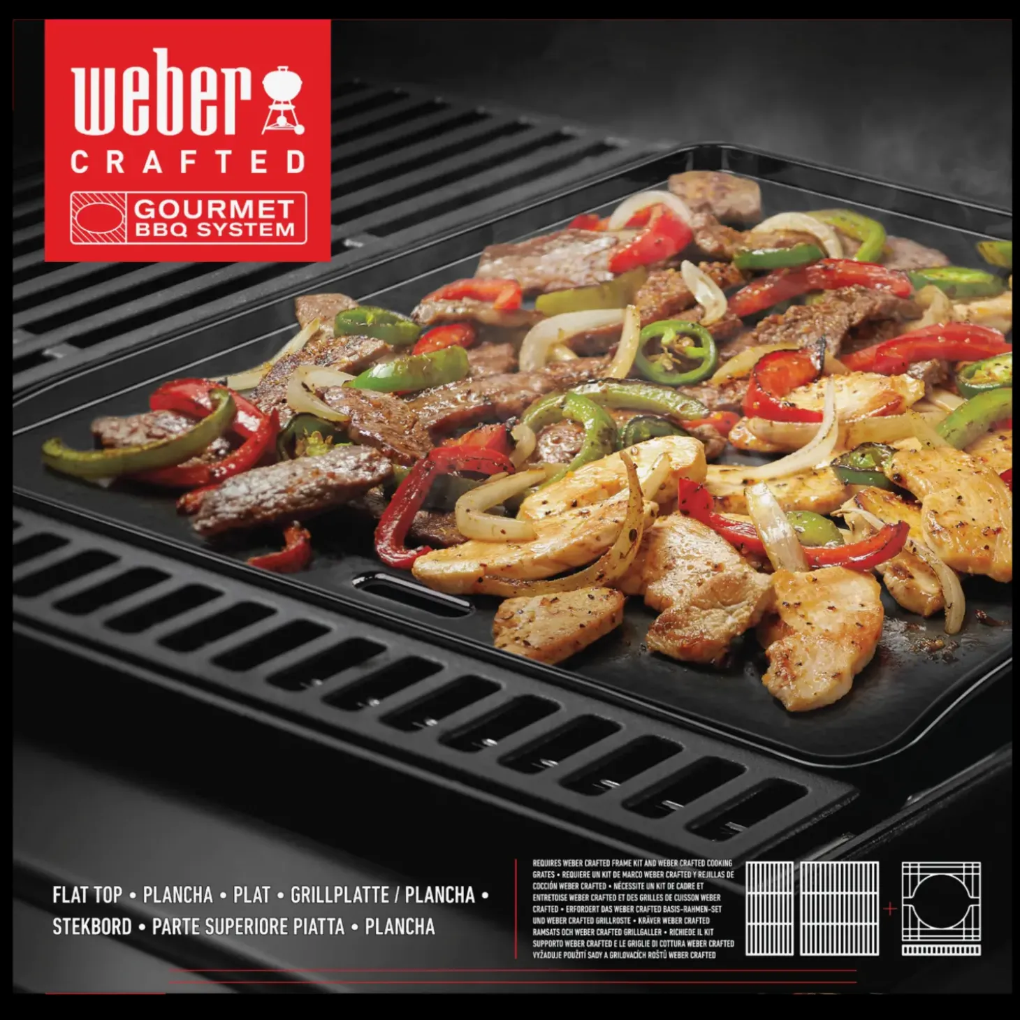 Weber Crafted stegeplade kommer som tilbehørsdel til Weber Crafted Gourmet BBQ System. Du skal blot udskifte grillristen i højre side med Weber Crafted-rammesættet, placere stegepladen i rammen og kan derefter gå i gang med at grille.