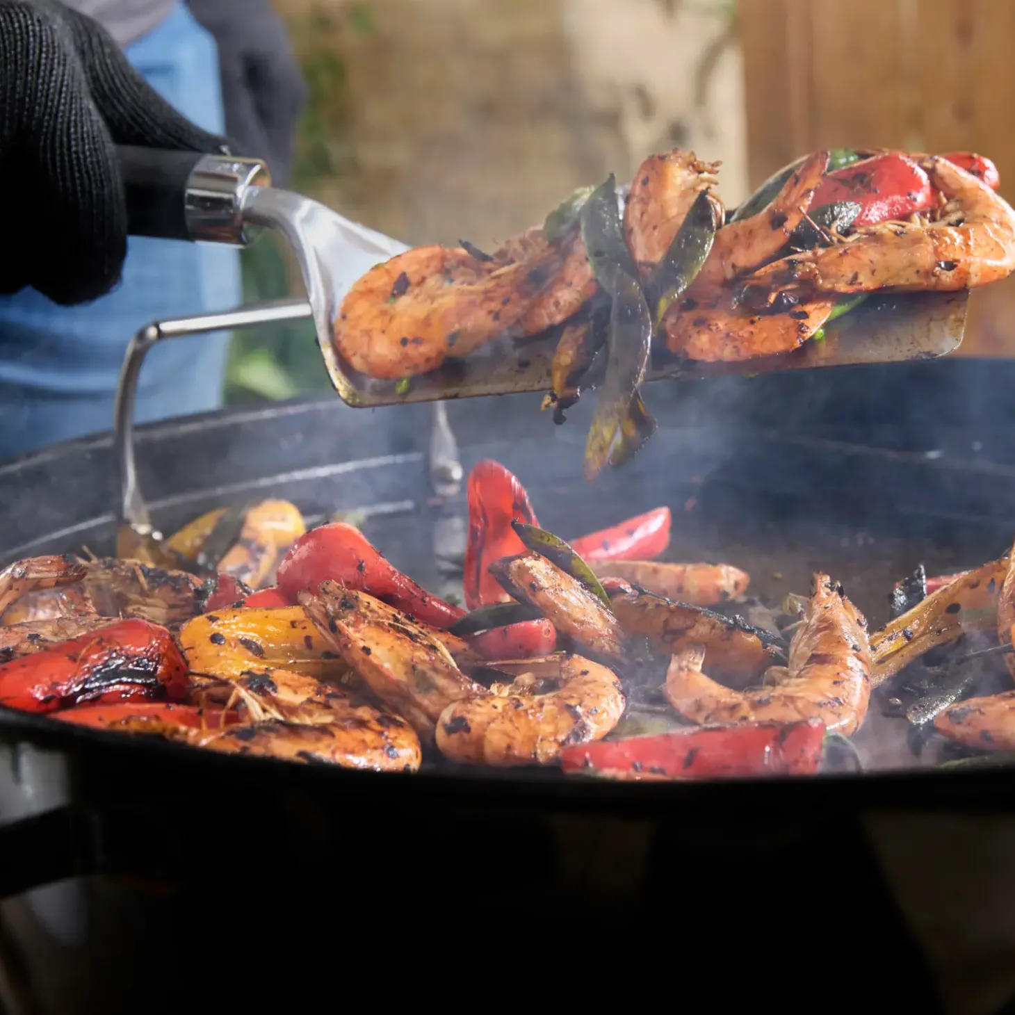 - Rundt design med hævet kant, der passer perfekt til grillen