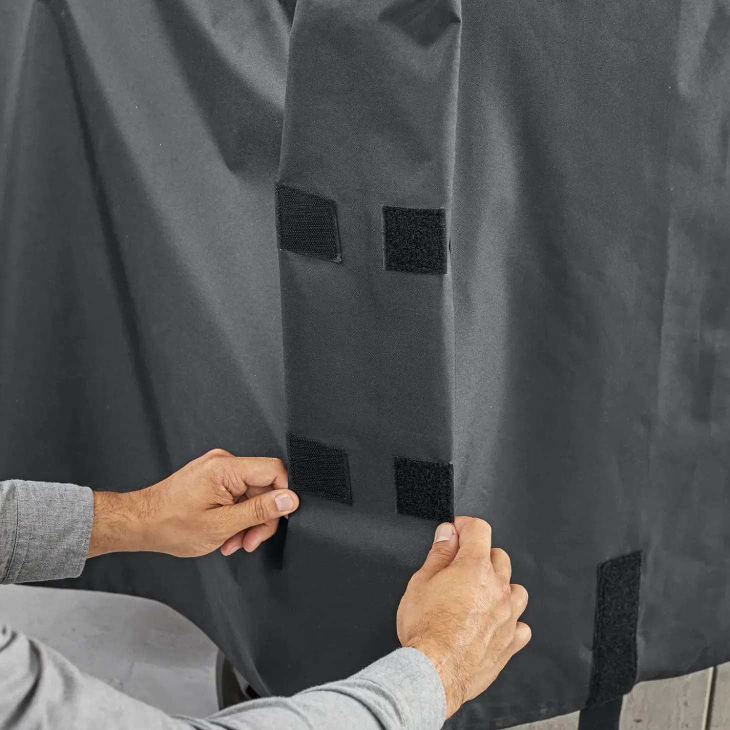 Weber grillbetræk til Pulse 1000 med stand er til dig, der ønsker at passe godt på din grill i sne, frost, regn eller brændende sol. Dette lette og luftige kvalitetsbetræk dækker grill og stander, og kan strammes ind med velcrobånd, så det beskytter mod snavs, vind og vejr hele vejen rundt. Betrækket er UV-beskyttet, åndbart og vandtæt.
