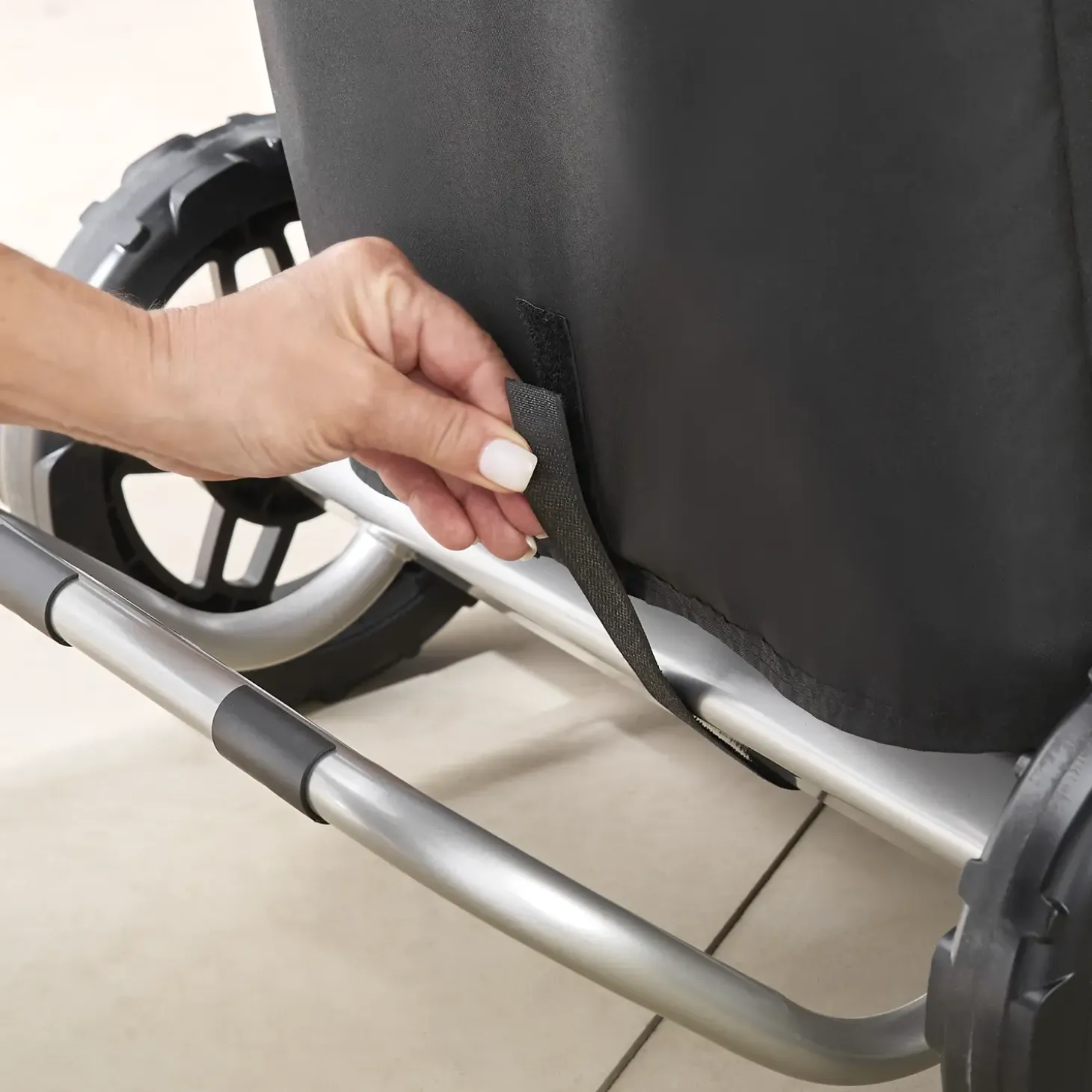 Uanset om der er silende regn, frost, sne eller brændende sol – det lette, men holdbare Premium-grillbetræk er nemt at trække af og sætte på din grill, når du tilbringer et par dage på campingpladsen. Betrækket er udstyret med stropper, så det ikke blæser af og for eksempel flyver ind i naboens have, og det er fremstillet af et vandafvisende polyestermateriale, der bevarer en ren og glat overflade.