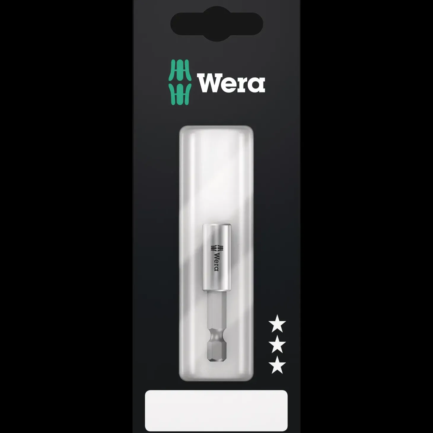 Den stærke permanente magnet holder bits fast. 1/4″-sekskant, passende til skruemaskiner med tilslutning ifølge DIN ISO 1173-F 6,3.