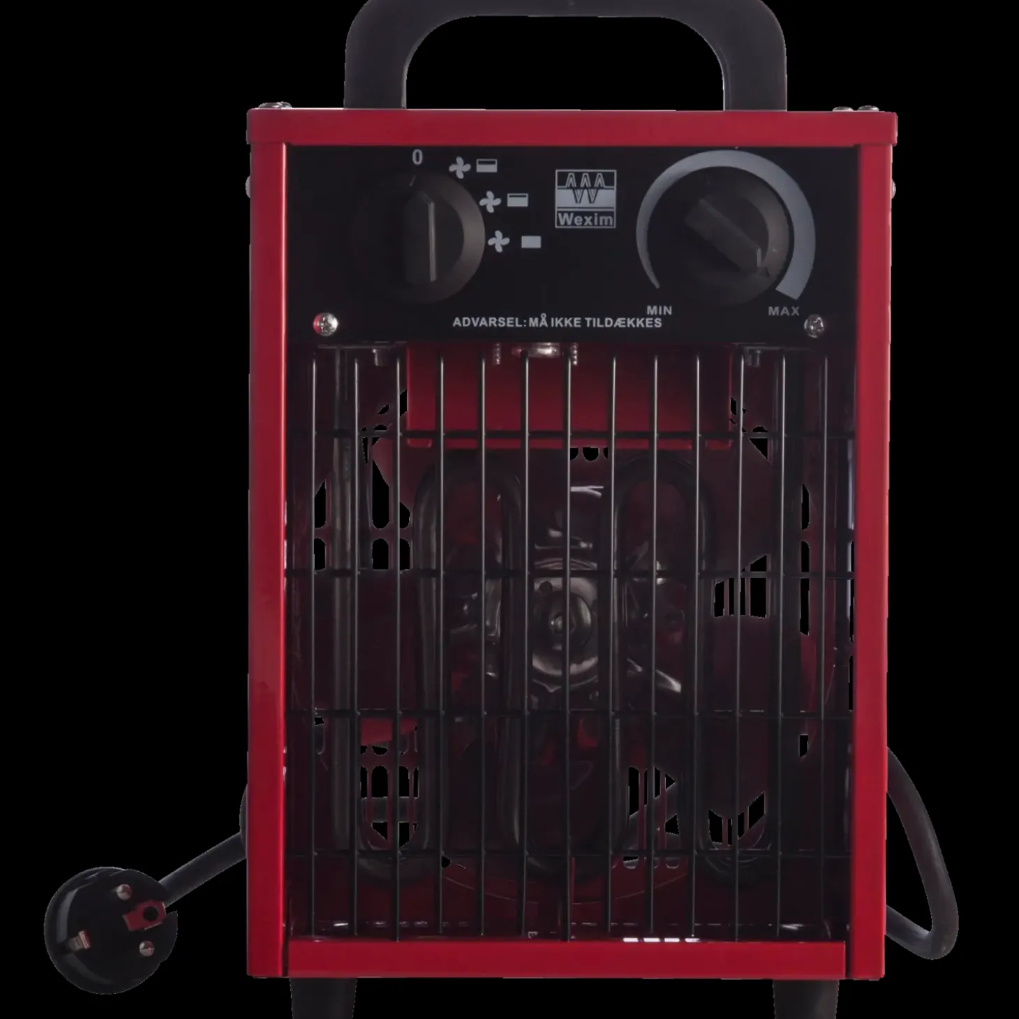 Professionel varmeblæser til mere belastede miljøer. Monteret med termostat, tretrinsvarme, 1,8 m kabel og dansk stikprop med jord. 230 V/50 Hz/8,7 A. IP44.