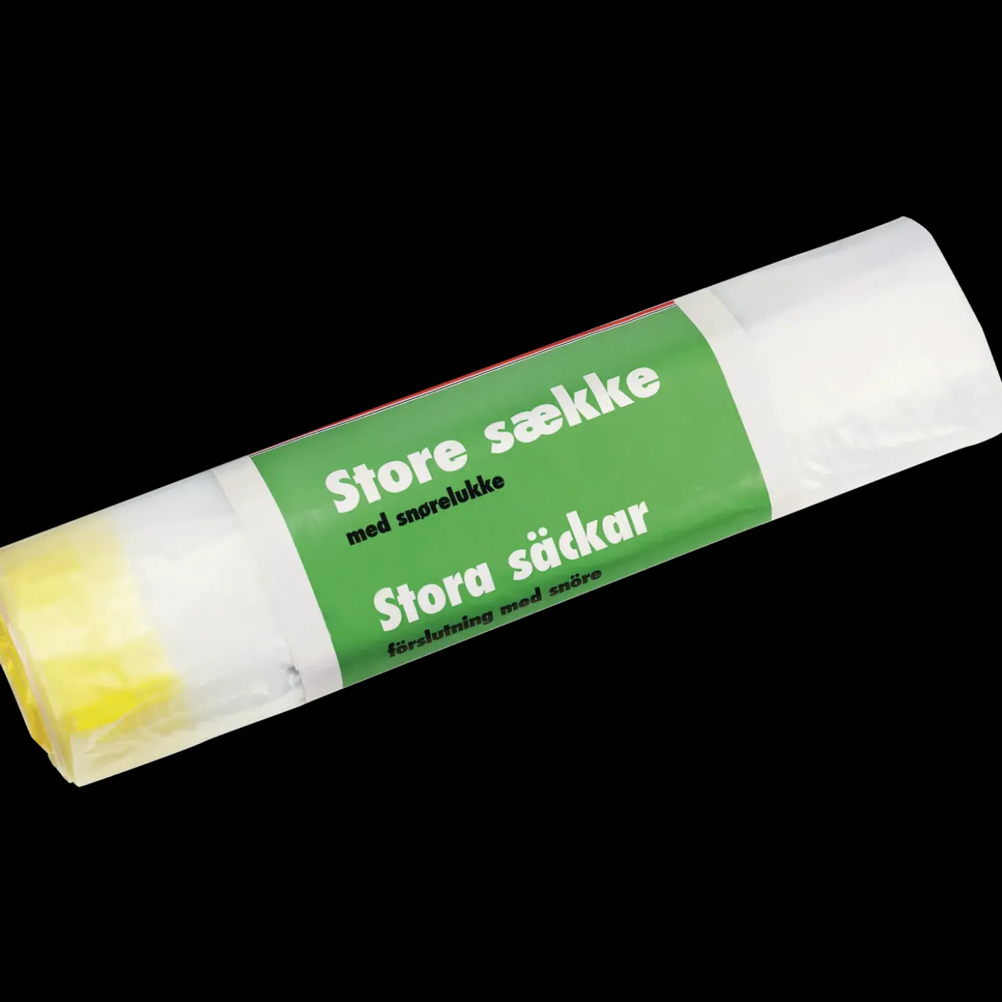 Klare plastsække med snøreluk i rulle med 10 stk.