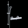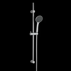 Brusestangsæt i krom med 1-spray Air-Flow håndbruser Ø100 mm, Rubber Clean gummi si og 35% vandsparer. Bruseslangen er 1,5 m silver-look med anti-twist forskruning, der hjælper til at bruserslangen ikke bliver snoet. Brusestangen måler 80 cm Ø 19 mm og er med trinløst variabelt topbeslag.