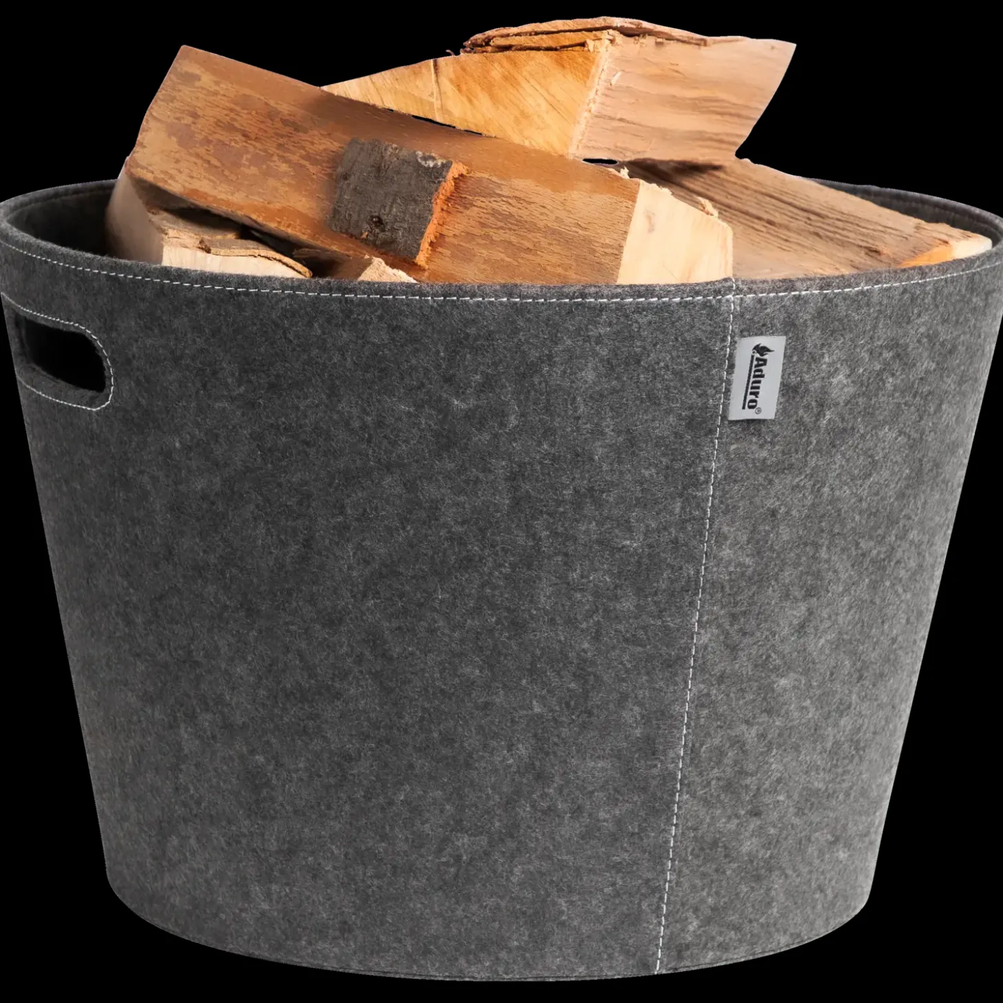 Rund brændekurv med en diameter på 45 cm og en højde på 29,5 cm. Brændekurven er designet af Casper Storm i filt. Kurven kan dels anvendes som brændekurv, men også til almindelig opbevaring.