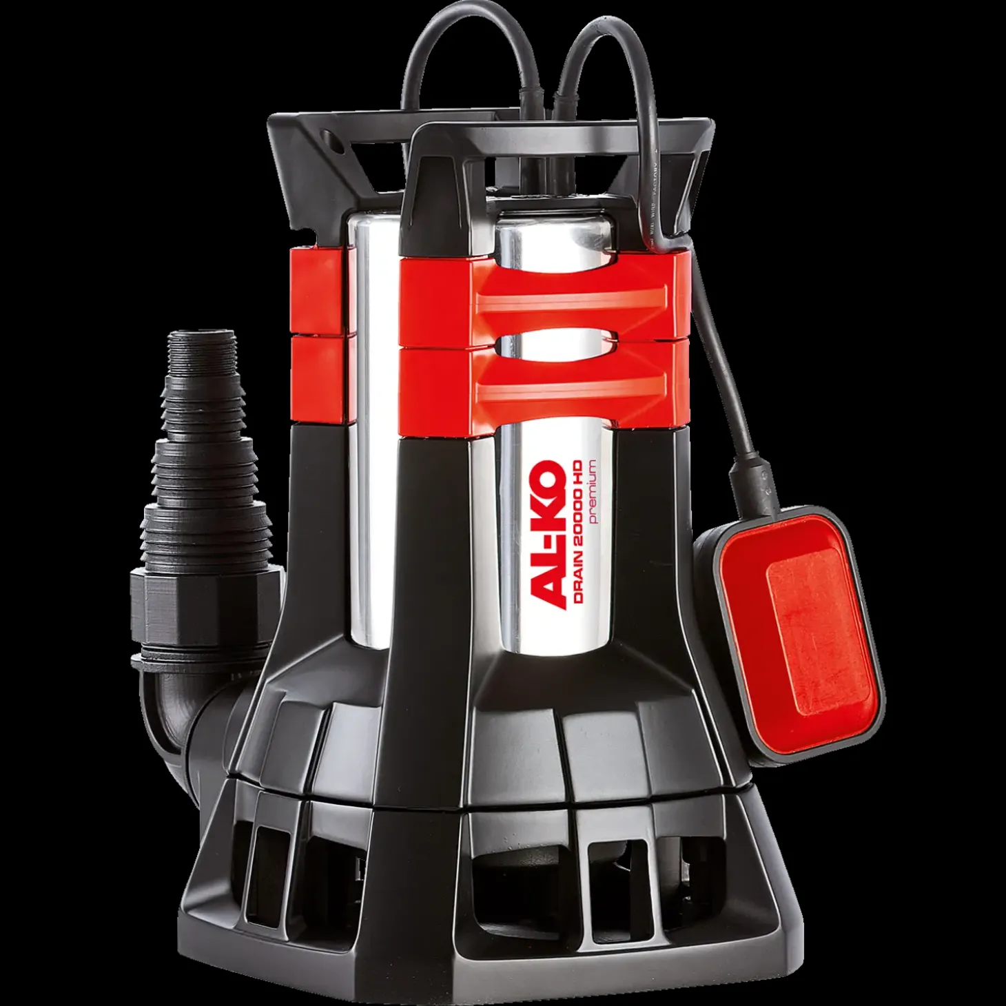 Ekstremt kraftig, kompakt og pålidelig AL-KO dykpumpe til urent vand DRAIN 20000 HD udført i rustfrit stål, pumper takket være den store indsugningsåbning problemløst også vand med smuds og flydende partikler, op til 38 mm kornstørrelse.