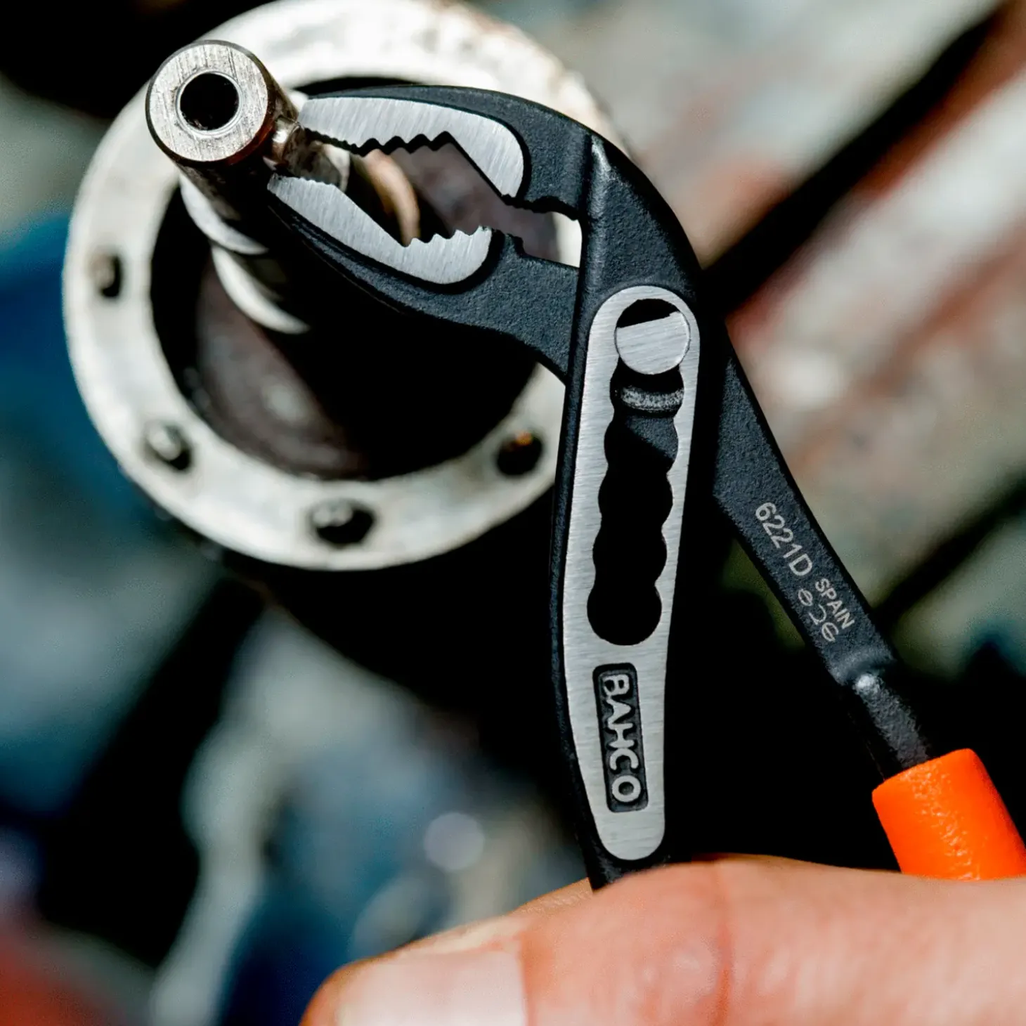 Vandpumpetang med robust ramme og PVC dyppede håndtag.