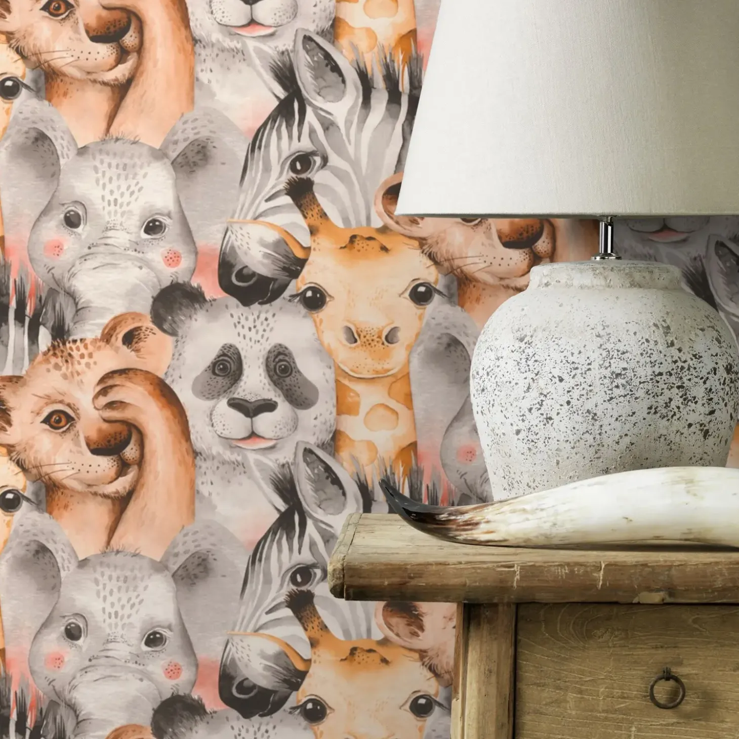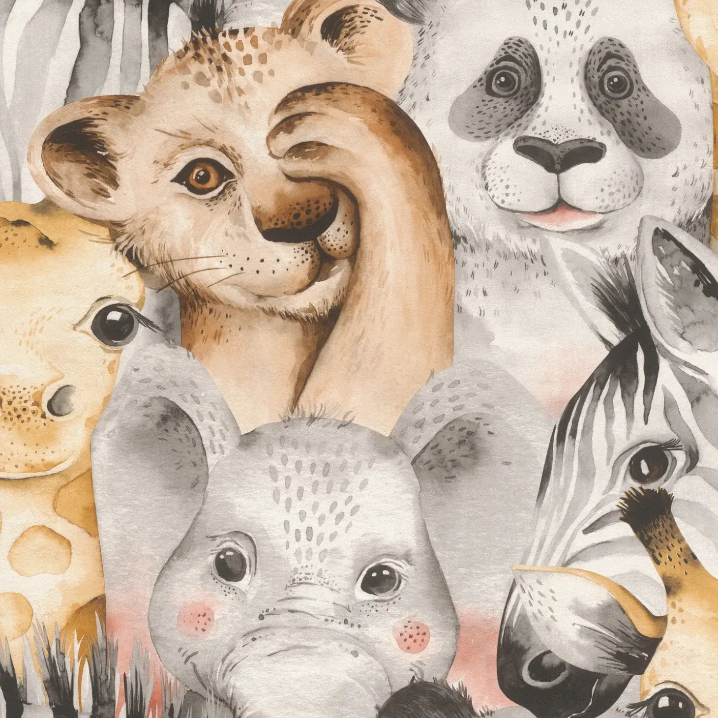 Tapetdesign med et detaljeret dyremotiv, hvor du kan finde forskellig figurative detaljer og gå på jagt efter de mange dyr på tapetet.