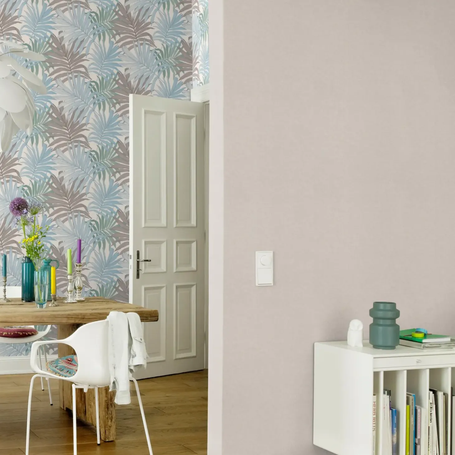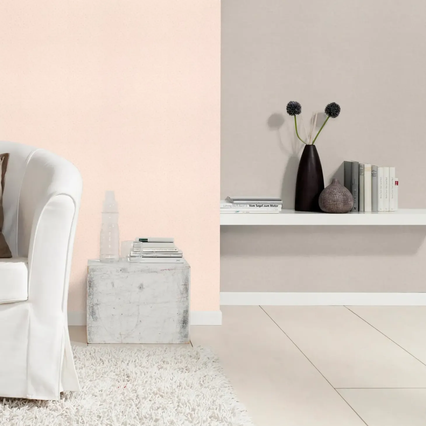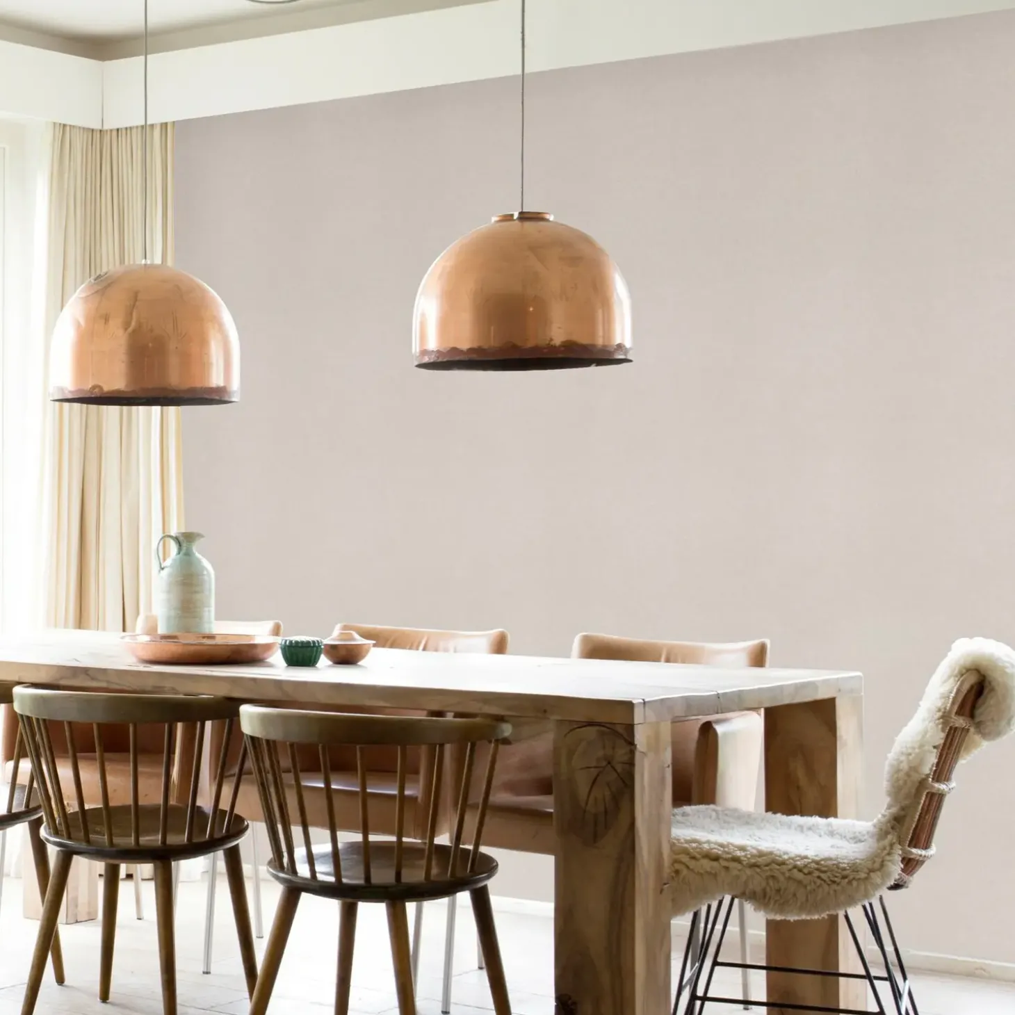 Et ensfarvet tapet med en elegant og diskret tekstilfornemmelse over sig – der vil give en rolig og behagelig fornemmelse i rummet.