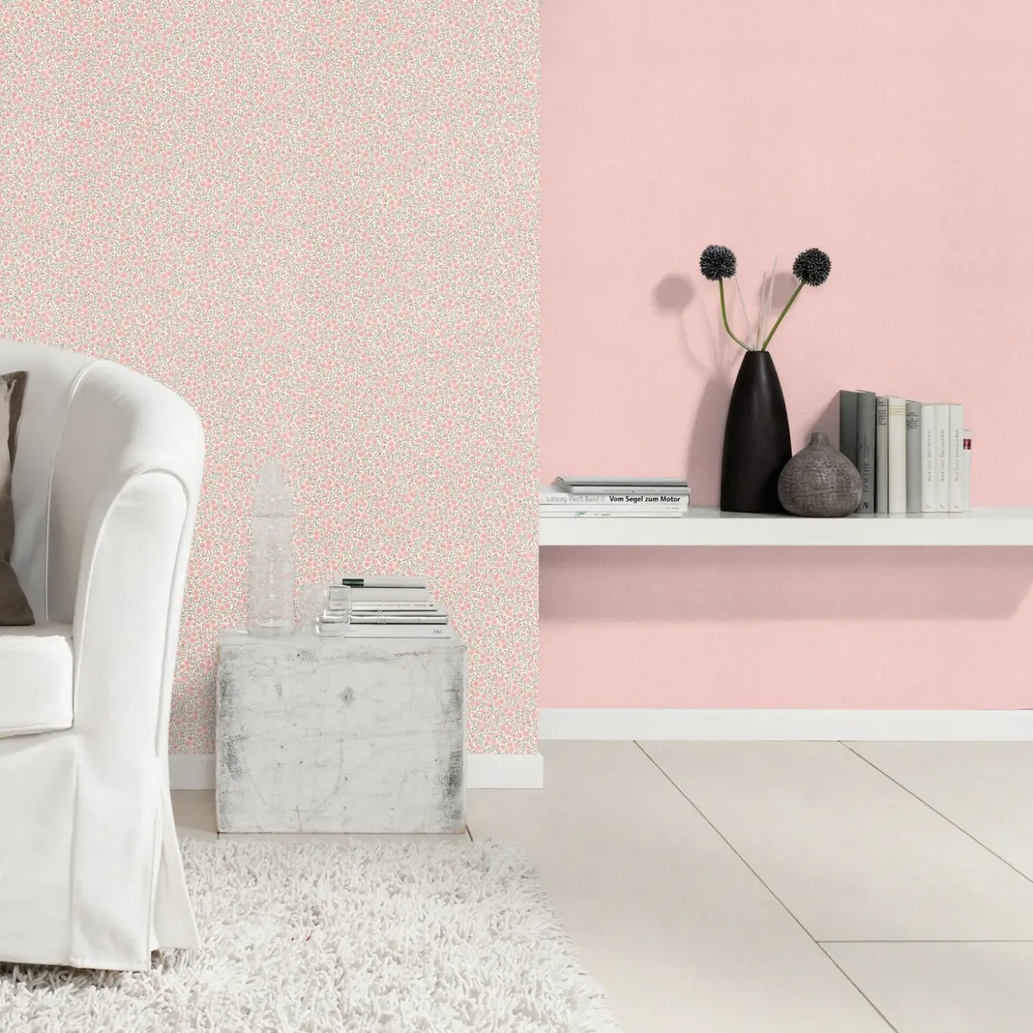 Et ensfarvet tapet med en elegant og diskret tekstilfornemmelse over sig – der vil give en rolig og behagelig fornemmelse i rummet.