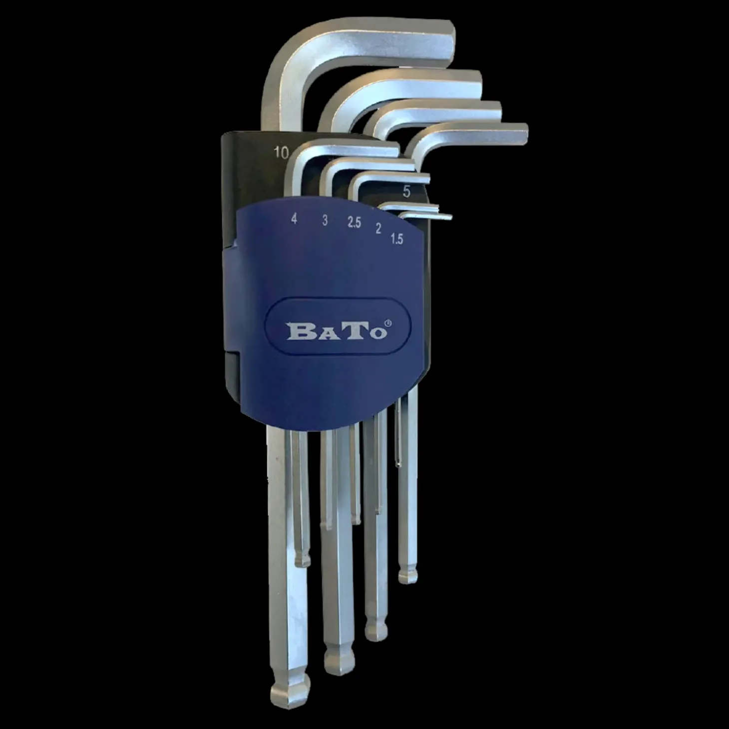 Bato stiftnøglesæt med kugle. Sættet indeholder 9 dele 1,5 – 2 – 2,5 – 3 – 4 – 5 – 6 – 8 – 10 mm.