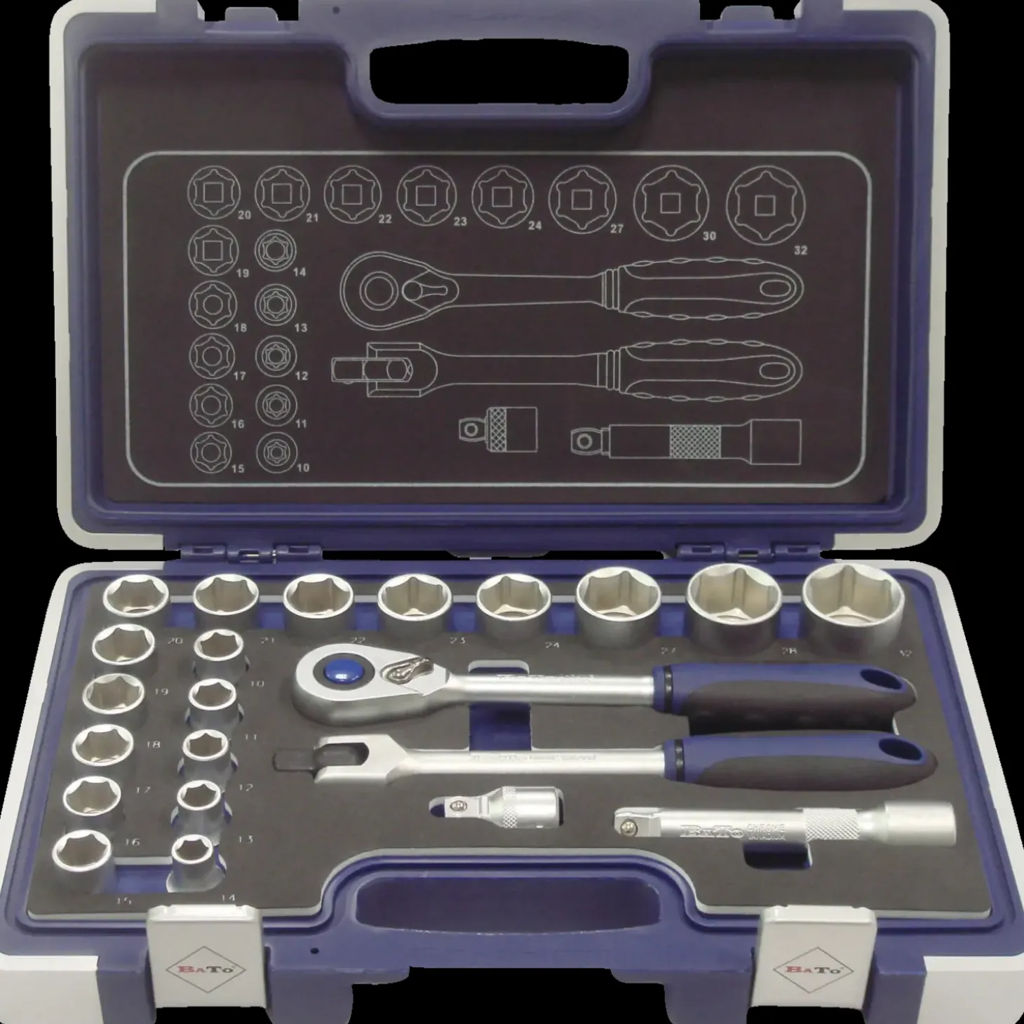Bahco topnøglesæt leveret i kraftig plastboks i blå.