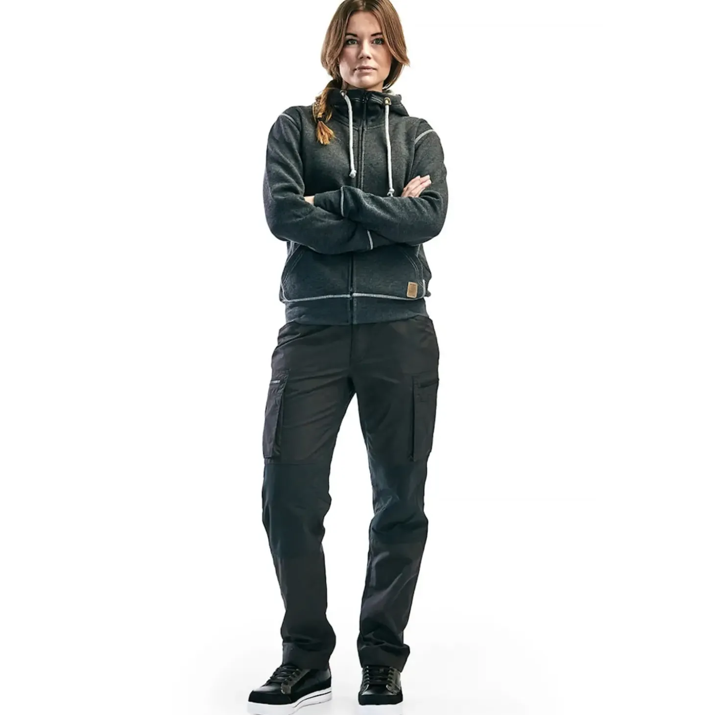 Moderne service buks i et let, men slidstærkt materiale, som er hurtigtørrende – hvilket gør buksen perfekt til indendørsarbejde, eller ude i varmt vejr. Modellen har smal pasform og elastik i livet, samt forbøjede ben for større komfort. For stor bevægelsesfrihed har buksen stretch i skridtet, på bagen og ved knæ. Buksen har pen- og knivlomme tilpasset højre- og venstrehåndet. Lårlomme med indvendig telefonlomme i mesh, samt mulighed for at forlænge ben til C100-str.