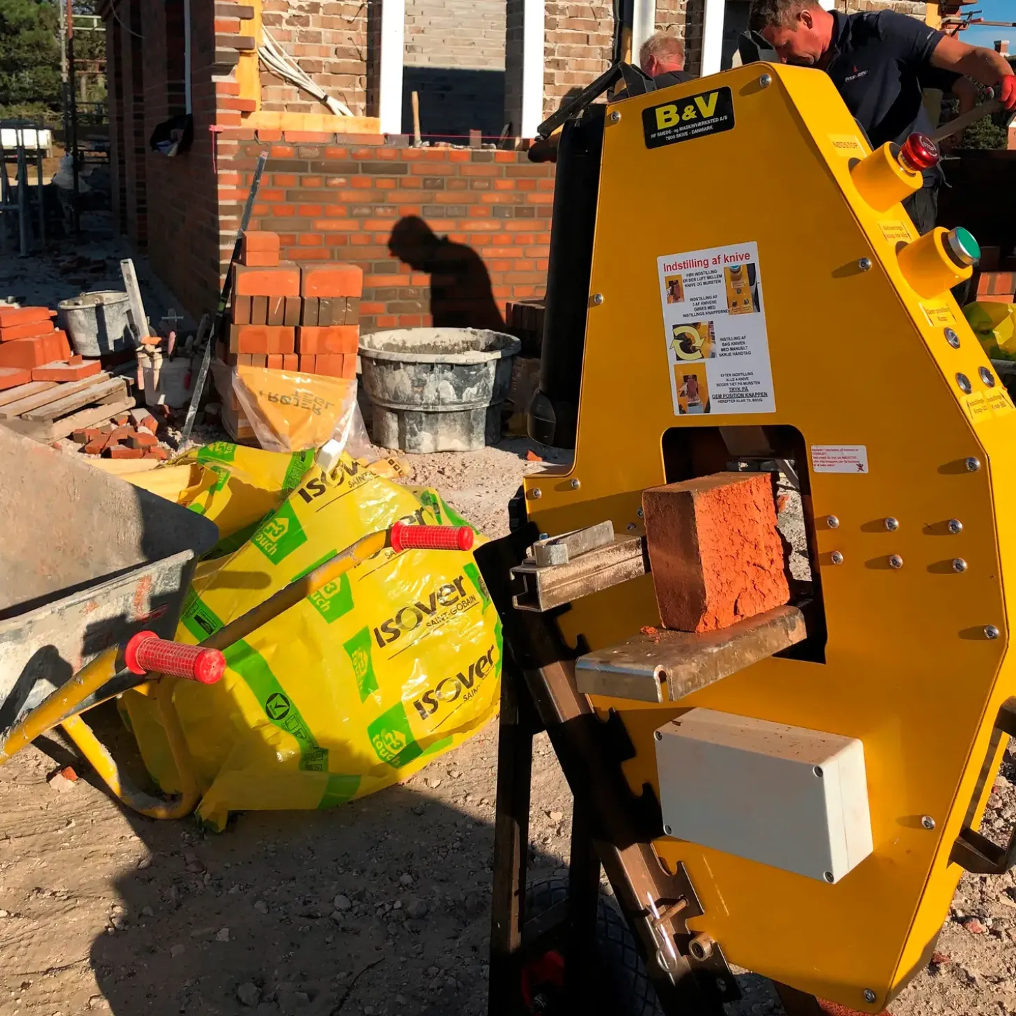 Knivene er justerbare og fjedrepåvirket, og kan indstilles ift. murstens størrelse.