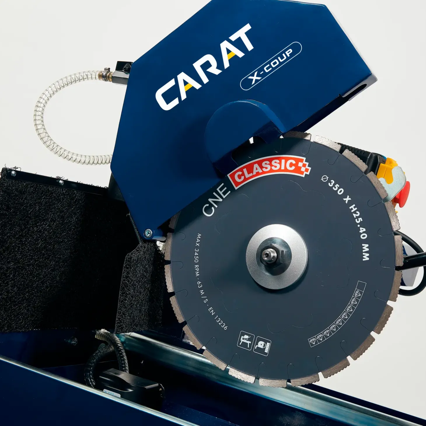 Carat stenskæremaskine Universal stenskæremaskine til bl.a. skæring af betonfliser, mursten og tagsten. Med 11 cm skæredybde og mulighed for vinkling i 45 grader, gør det maskinen anvendelig til mange typer opgaver. Skærebordsstørrelsen gør den ideel til skæring af 60×60 fliser. Den er foldbar for nemmere transport. Grundet dens smalle bredde gør den det nemt og transportere gennem f.eks. døråbninger.