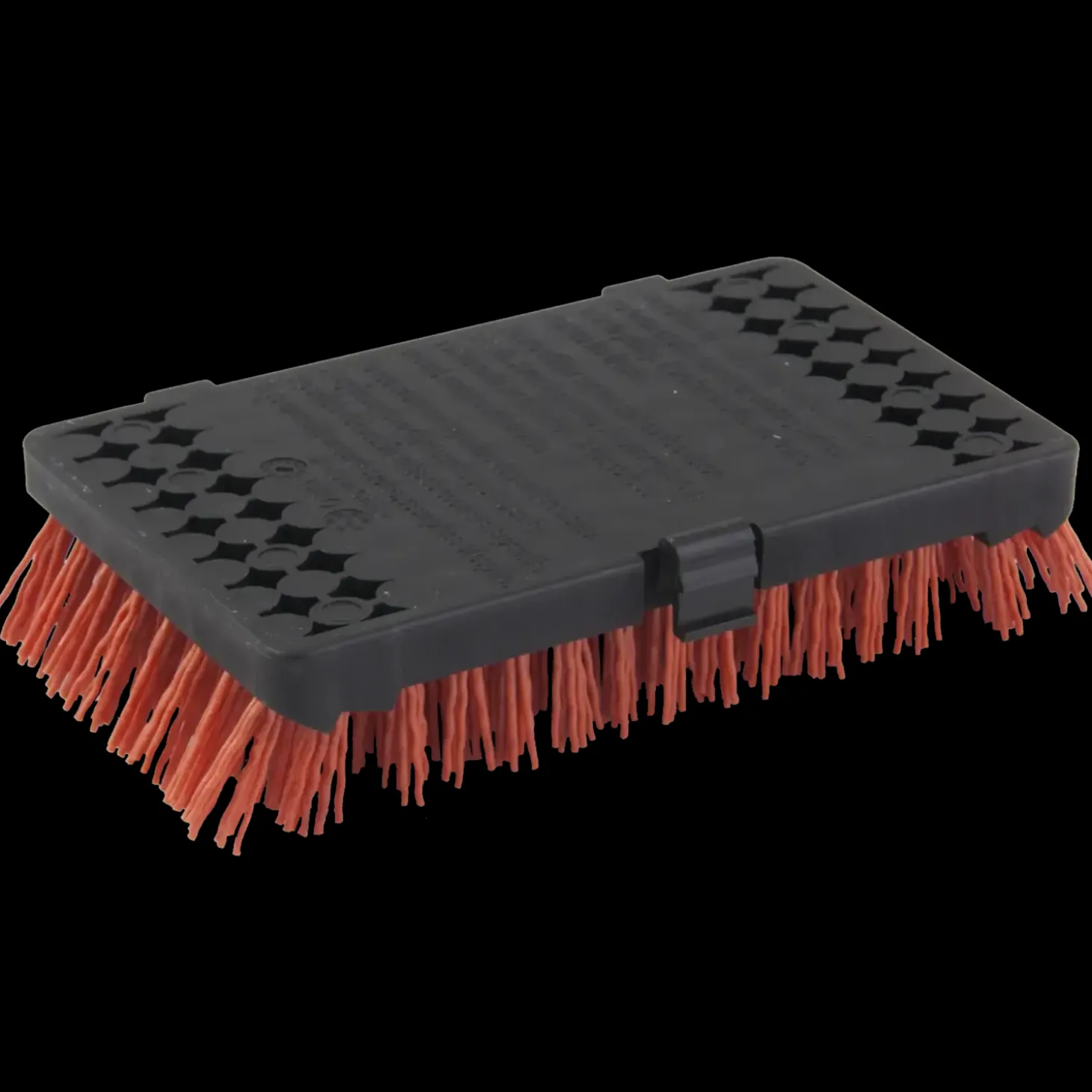Char‑Broil® udskiftningshovedet til Cool-Clean Premium grillbørsten giver dig mulighed for at rengøre din grill mere sikkert end konventionelle børster med metalbørster. Denne innovative børste er kendetegnet ved røde nylonbørster, som er gennemsyret med keramik, og som har modstået op til 15.000 kørsler i vores test uden at gå i stykker eller miste børstehårene. Brug den til at rengøre de afkølede riste, så du kan have glæde af din grill rigtigt længe. Reservehovedet til Cool-Clean Premium-grillbørsten blev specielt udviklet til brug med Cool-Clean Premium-grillbørsten.