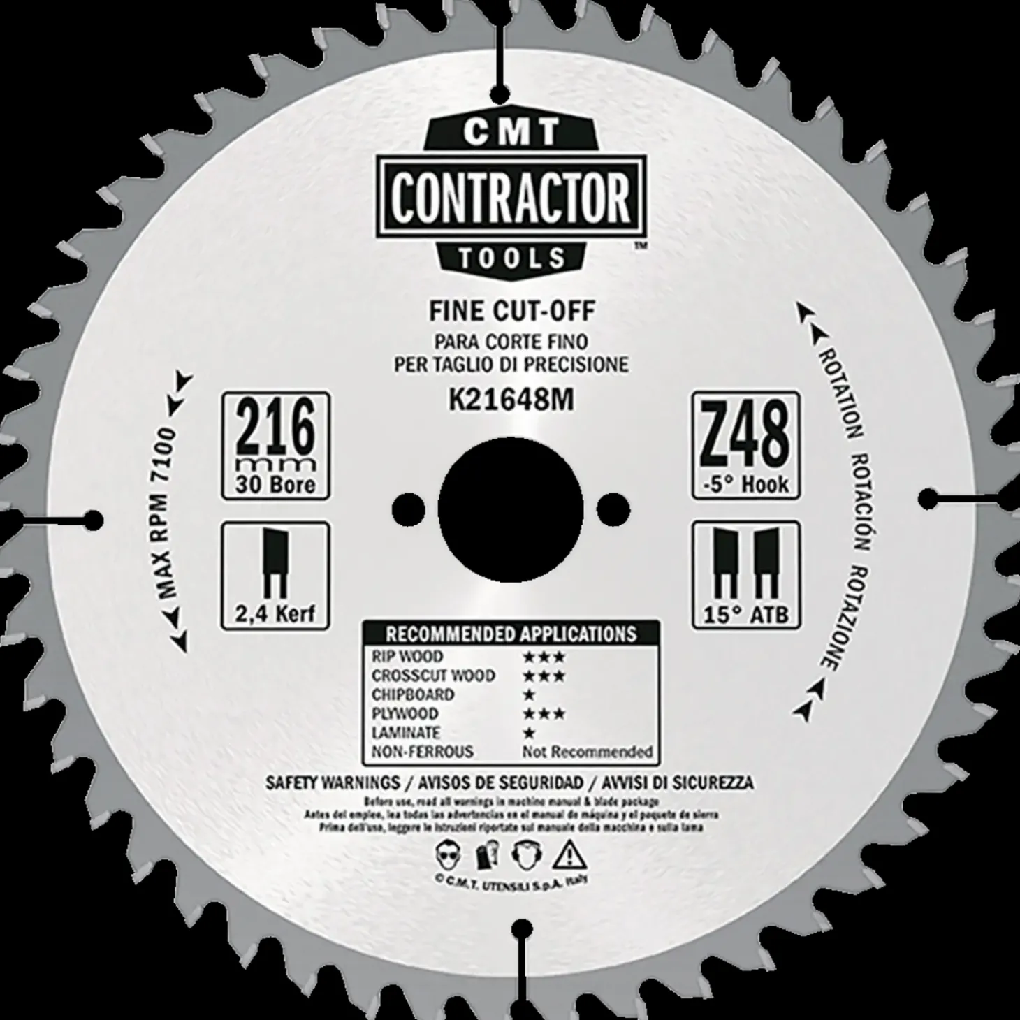 CMT Contractor savklinge er til forskellige afkortersave til savning i træ og lign. materialer. Designet til bygningsarbejde, nedrivningsarbejde samt andre opgaver med træbearbejdning.