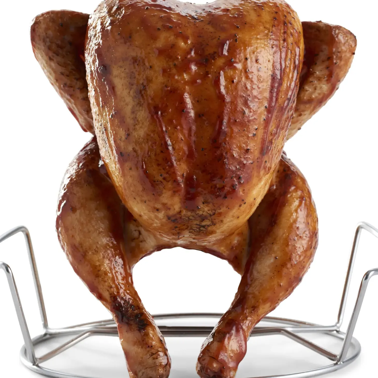 Kyllingeholderen er udstyret med smarte detaljer, såsom integreret håndtag i siderne, der sikrer nem håndtering af holderen. Derudover er holderen fremstillet i rustfrit stål, der er robust overfor brug. Og med din non-stick overflade er du sikrer at kyllingen ikke brænder fast ved tilberedning.