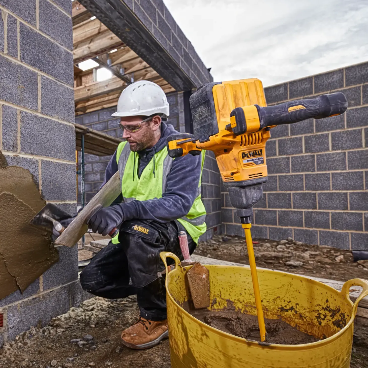 XR FLEXVOLT akku-teknologi leverer en kraft svarende til en 2000W 230V mixer. Variabel hastighed til en lang række forskellige materialer. Ergonomisk dobbelt håndtag til kontrol og komfortStandard M14-fæste. Leveres med 160mm piskeris til hurtig og vedvarende mixing